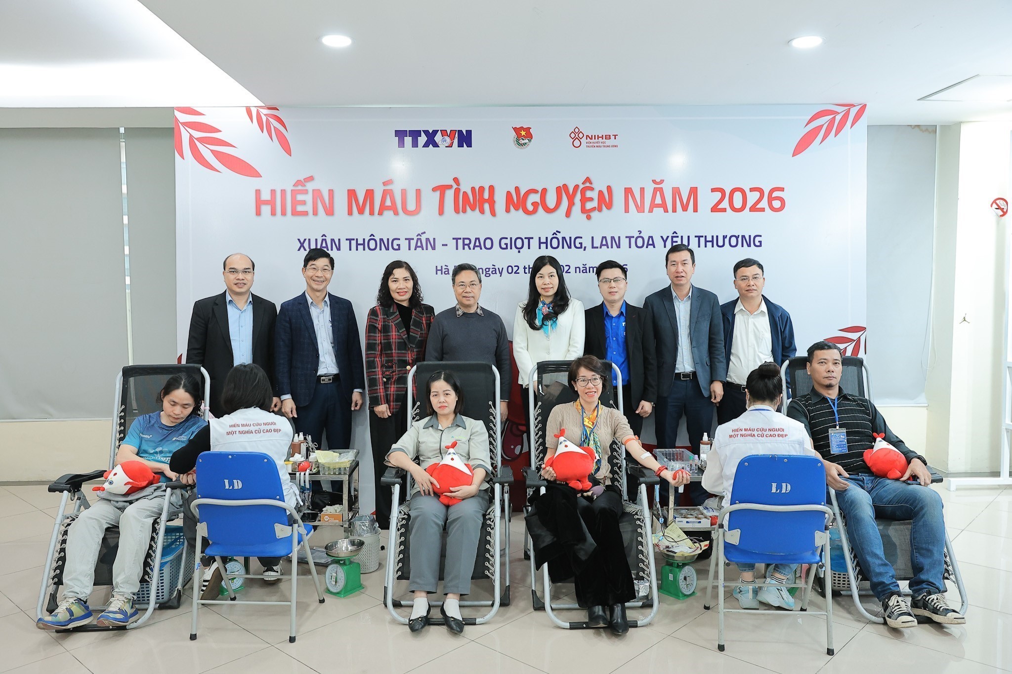 Sáng 2/2, tại Trung tâm Thông tấn quốc gia, Hà Nội, Thông tấn xã Việt Nam (TTXVN) phối hợp với Viện Huyết học - Truyền máu Trung ương tổ chức Chương trình hiến máu tình nguyện với chủ đề “Xuân Thông tấn - Trao giọt hồng, lan tỏa yêu thương”.