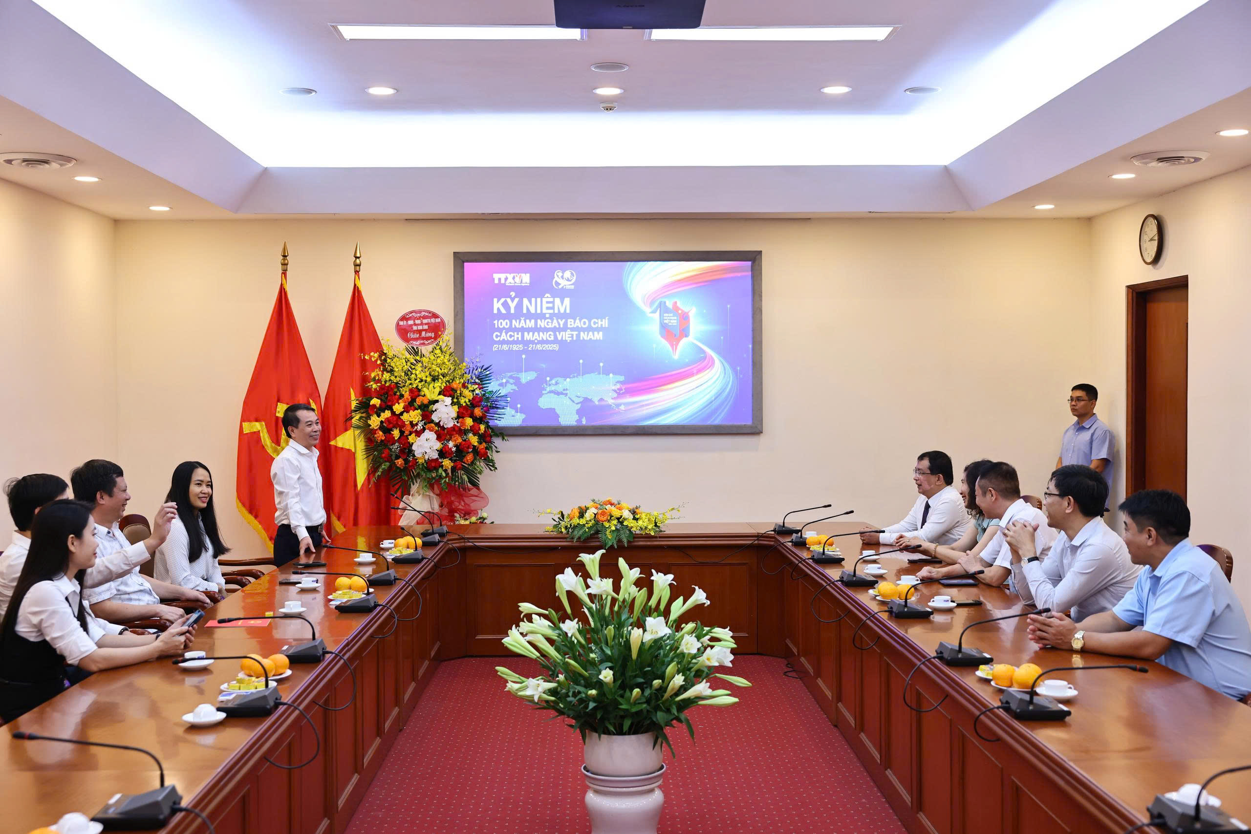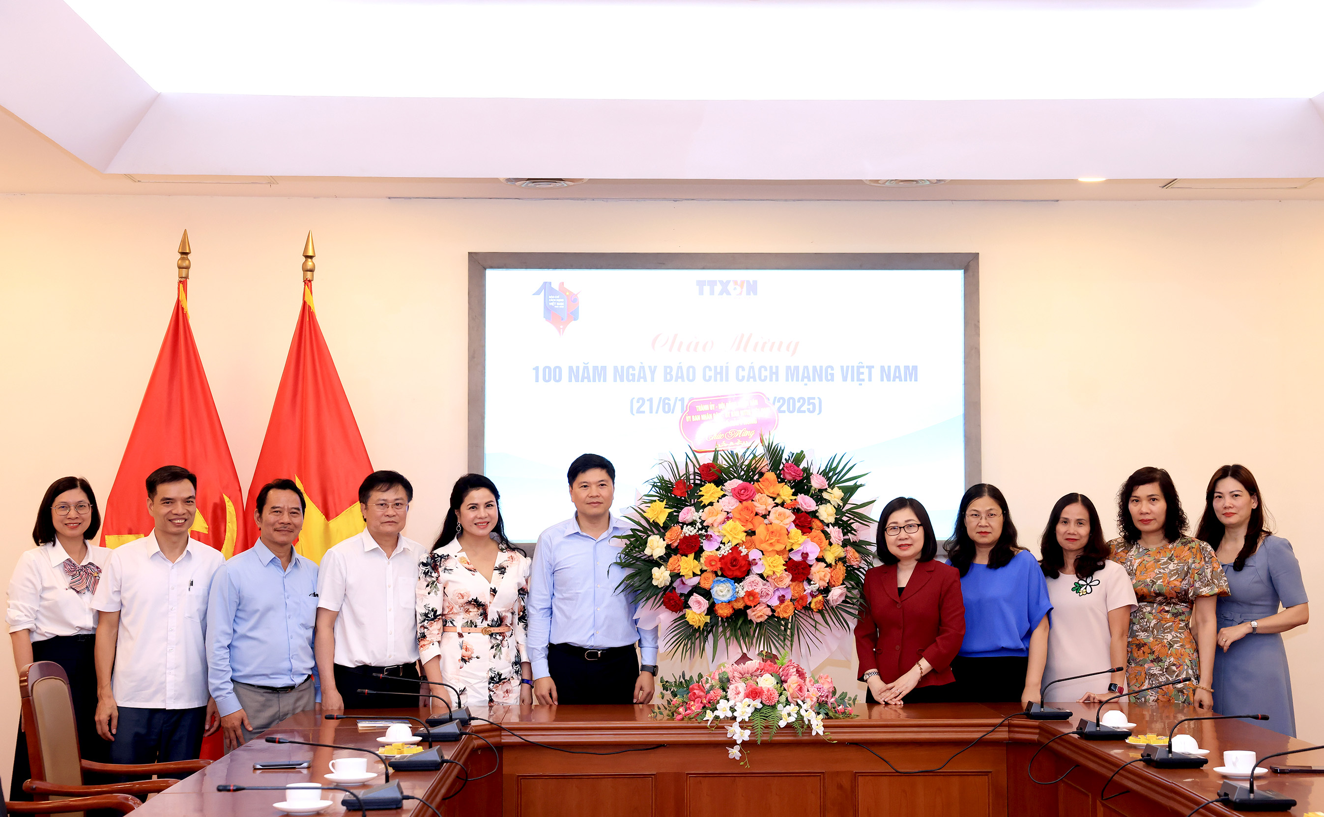 Nhân dịp kỷ niệm 100 năm Ngày Báo chí cách mạng Việt Nam (21/6/1925-21/6/2025), Thông tấn xã Việt Nam (TTXVN) vinh dự đón tiếp nhiều đoàn đại biểu các cơ quan Đảng, Nhà nước, Quốc hội, các bộ, ban, ngành đoàn thể trung ương, các tỉnh, thành phố, các đơn vị, doanh nghiệp đến chúc mừng và gửi lẵng hoa chúc mừng.