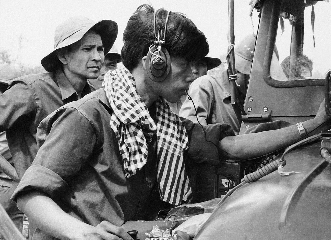 | Các kỹ thuật viên dừng chân ở Trảng Bàng, Tây Ninh để chuyển tin Tổng thống ngụy quyền Dương Văn Minh tuyên bố đầu hàng vô điều kiện về căn cứ, ngày 30/4/1975 |
