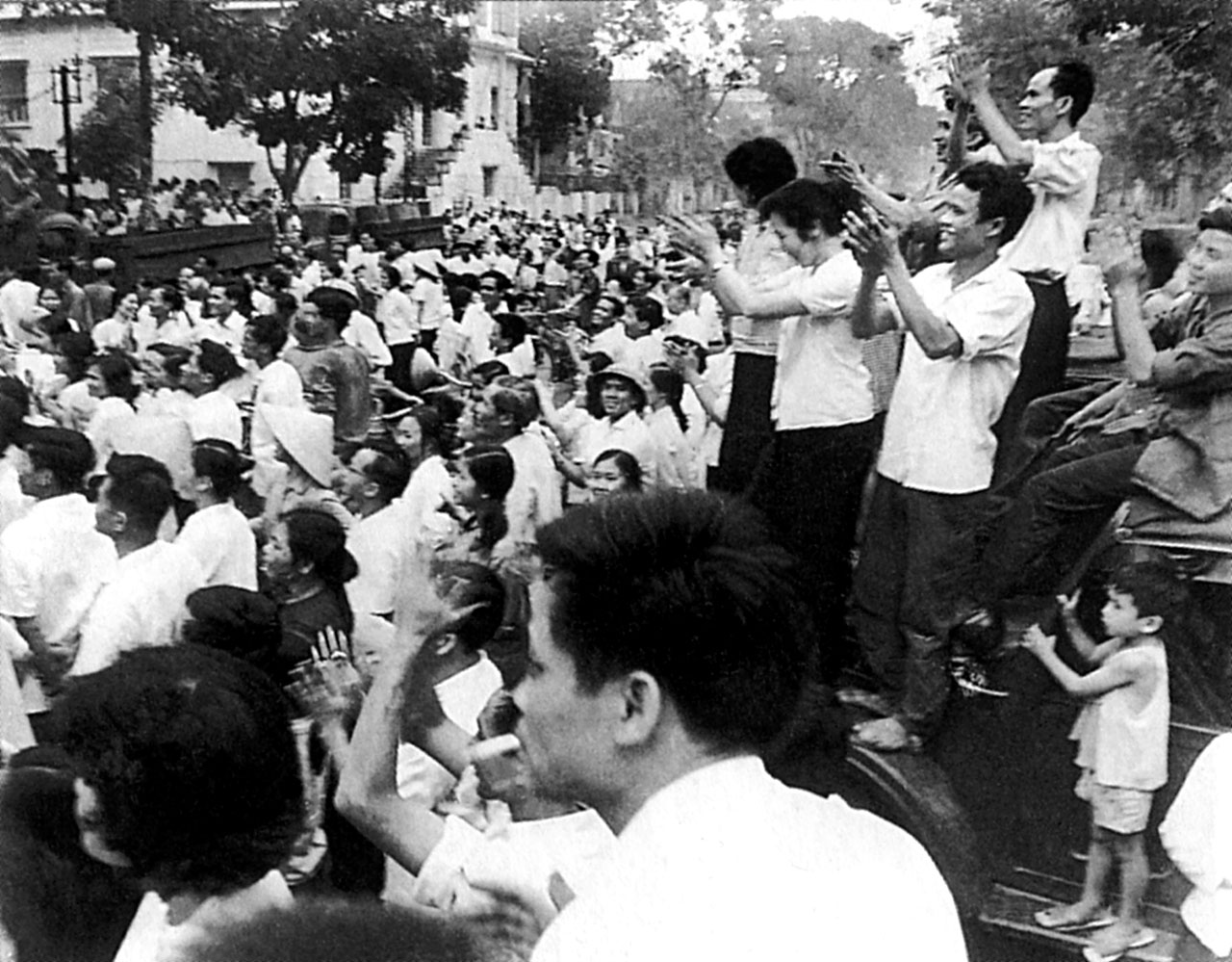 | Nhân dân Thủ đô Hà Nội đứng trước cổng trụ sở VNTTX, số 5 Lý Thường Kiệt, Hà Nội hân hoan đón chào tin vui Đại thắng, ngày 30/4/1975 |