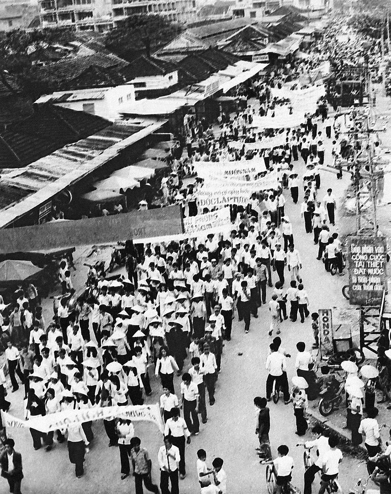 ![]() ![]() Nhân dân Sài Gòn đổ ra đường hoan hô bộ đội giải phóng, tháng 4/1975. Ảnh: Đinh Quang Thành |