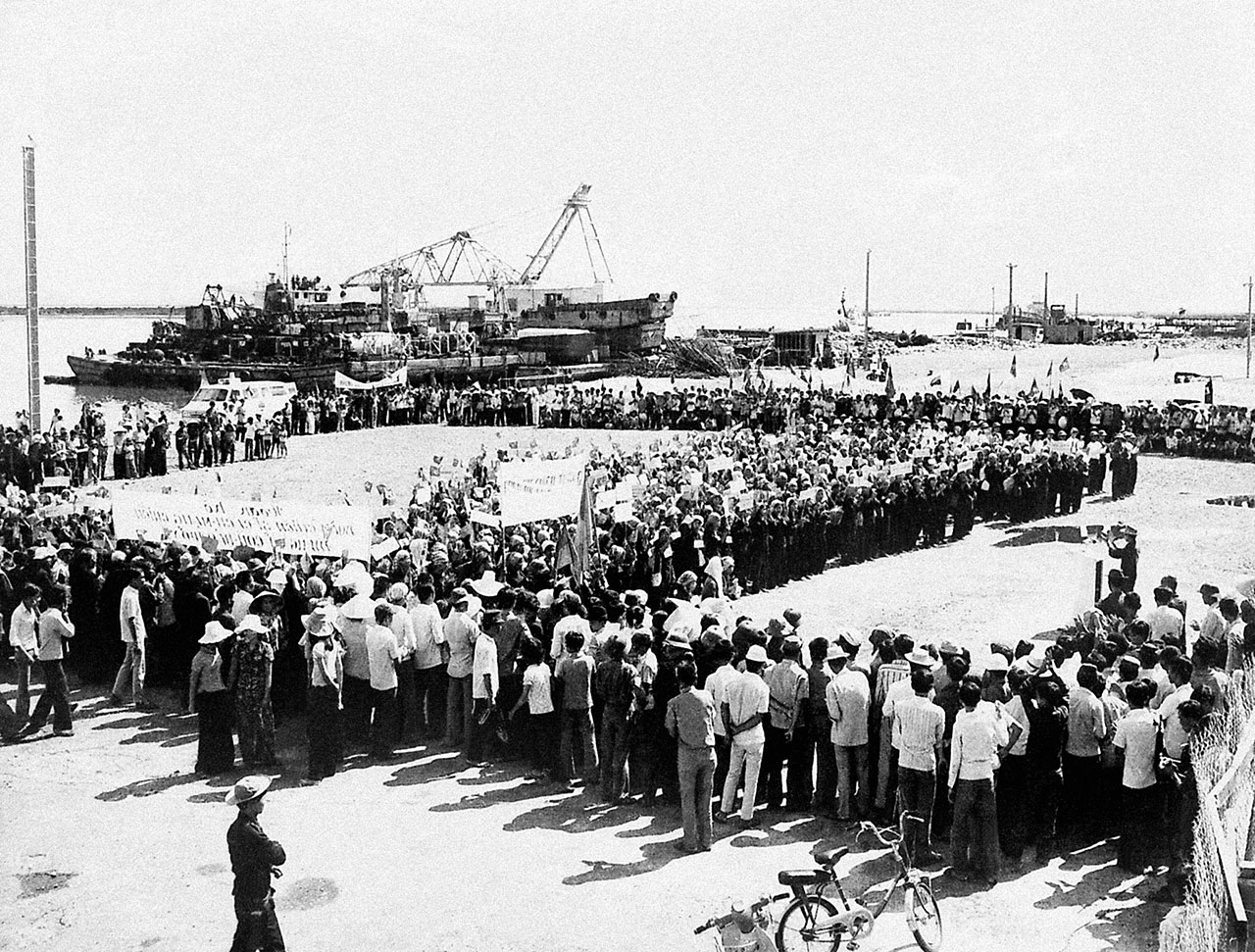 ![]() Giải phóng Côn Đảo, đón chào hàng ngàn cán bộ, chiến sĩ bị Mỹ ngụy giam cầm trở về đất liền. Ảnh: Vũ Tạo |