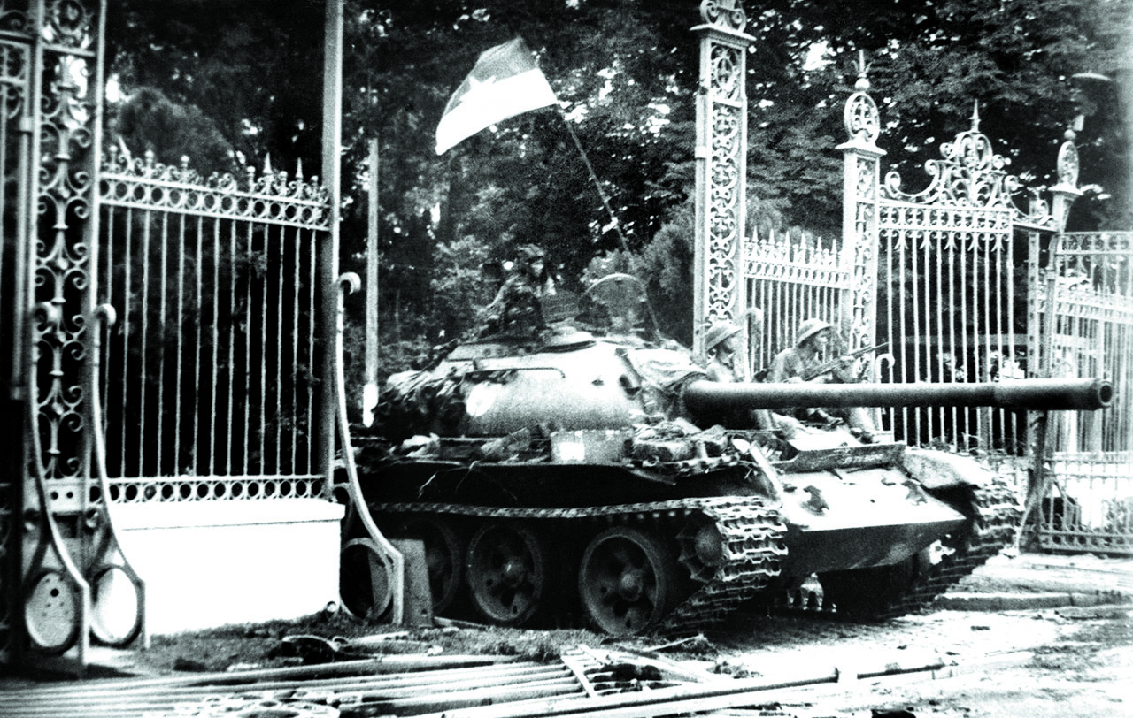 ![]() Xe tăng Quân giải phóng tiến vào Dinh Độc Lập, ngày 30/4/1975. Ảnh: Trần Mai Hưởng |