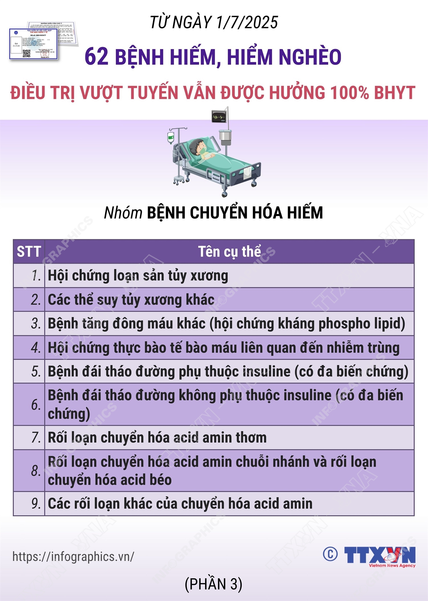 62 bệnh hiếm, hiểm nghèo điều trị vượt tuyến vẫn được hưởng 100% BHYT: Nhóm Bệnh chuyển hóa hiếm