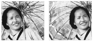 Nên để phần rộng hơn ở phía hướng nhìn của nhân vật (ảnh trái). Không nên cắt sát ở phía hướng nhìn của nhân vật (ảnh phải) |