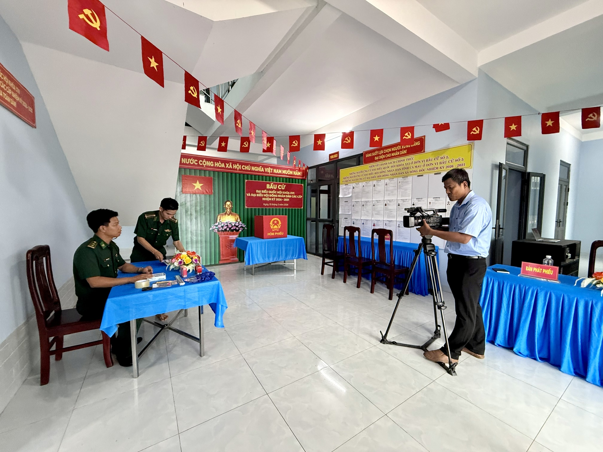 | Phó trưởng CQTT Cà Mau Danh Chanh Đa tại điểm bầu cử sớm đảo tiền tiêu Hòn Chuối, ngày 13/3 |