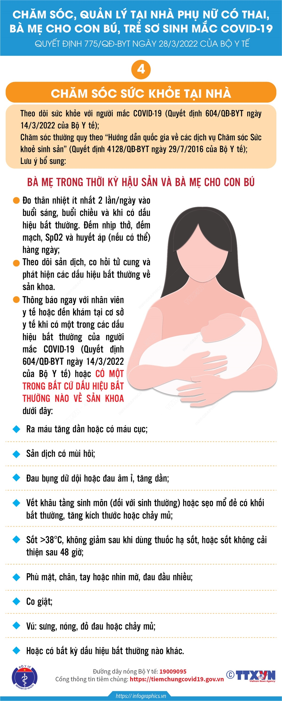 Chăm sóc sức khỏe tại nhà bà mẹ trong thời kỳ hậu sản và bà mẹ cho con bú mắc COVID-19
