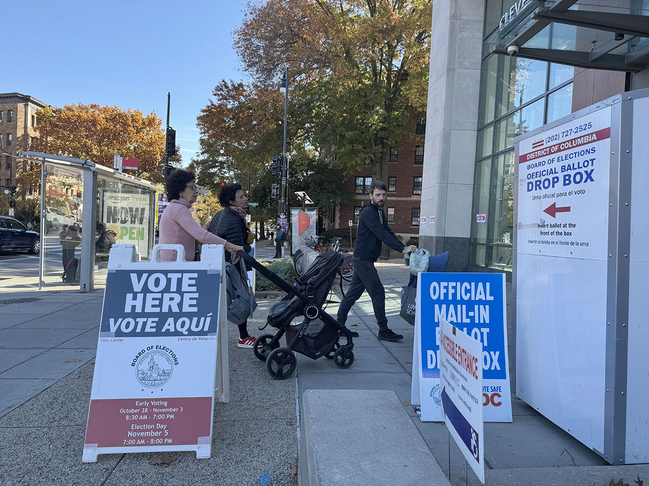 Một gia đình tại Mỹ đi bỏ phiếu trực tiếp dịp cuối tuần, tháng 11/2024. Ảnh do phóng viên TTXVN tại Washington thực hiện |