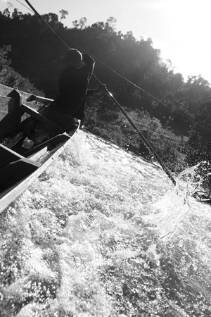 Sau khi nghe câu chuyện, tôi và Hữu Tuấn hội ý chớp nhoáng. Hữu Tuấn bảo rằng: "Sống chết có số, đến đây rồi chả lẽ lại không vào?". Thấy chúng tôi quyết tâm, Thượng tá Minh đành phải gọi chủ thuyền Quàng Văn Báo (người Thái ở xã Môn Sơn) để "giao phó" trách nhiệm. Báo đã 15 năm hành nghề sông nước và là tay chèo thuyền nức tiếng vùng sông Giăng.