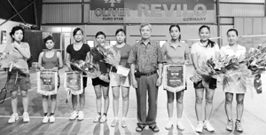 Các VĐV đoạt giải cầu lông nội dung đôi nữ - Giải thể thao TTXVN 2011