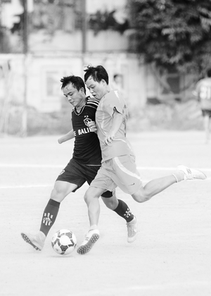 Một pha tranh bóng trong trận Ban BT-SX ảnh báo chí gặp Ban BTT Thế giới- Giải thể thao TTXVN 2011 |