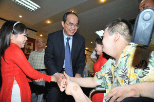 Phó Thủ tướng Nguyễn Thiện Nhân thăm hỏi, động viên các nạn nhân da cam/diôxin tại Chương trình giao lưu 'Vì nỗi đau da cam' do TTXVN tổ chức |