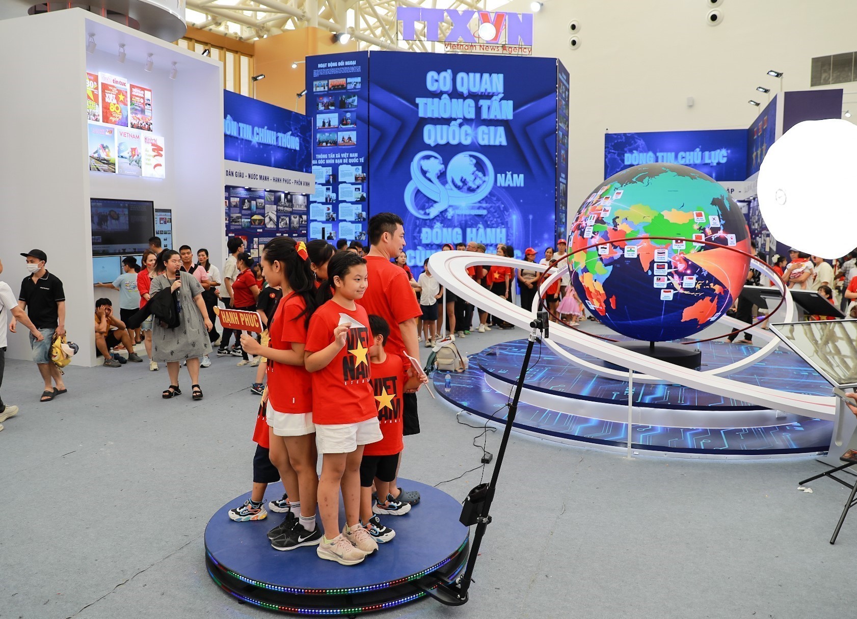 Trong những ngày diễn ra Triển lãm, nhất là dịp cao điểm 2/9, khu trưng bày của TTXVN đã tiếp đón nhiều đồng chí lãnh đạo và đông đảo nhân dân đến tham quan. Để công tác tiếp đón được chu đáo, đội ngũ phát hành, truyền thông của Trung tâm Nội dung số và Truyền thông đã huy động hầu hết quân số, phối hợp cùng các đơn vị, ứng trực liên tục để giới thiệu các sản phẩm thông tin đặc biệt của TTXVN. Các phóng viên, quay phim của Ban biên tập Ảnh, Trung tâm Nội dung số và Truyền thông duy trì các ca trực liên tục hai buổi sáng, chiều để ghi lại những khoảnh khắc sống động và giàu cảm xúc của khách tham quan. Các kỹ thuật viên Trung tâm Kỹ thuật đảm bảo hệ thống màn hình LED, âm thanh, ánh sáng hoạt động trơn tru, hiệu quả, an toàn. Đoàn thanh niên TTXVN tổ chức các hoạt động tương tác, các cuộc thi tìm hiểu về Quốc khánh và TTXVN, khu check-in video 3600 mang đến những trải nghiệm độc đáo, thú vị cho khách tham quan.