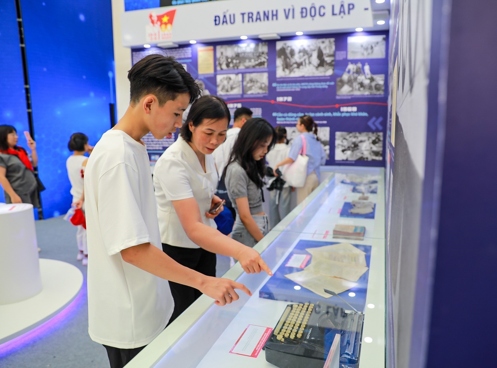 Người dân tìm hiểu các hiện vật truyền thống của TTXVN tại Triển lãm thành tựu đất nước "80 năm hành trình Độc lập - Tự do - Hạnh phúc" |