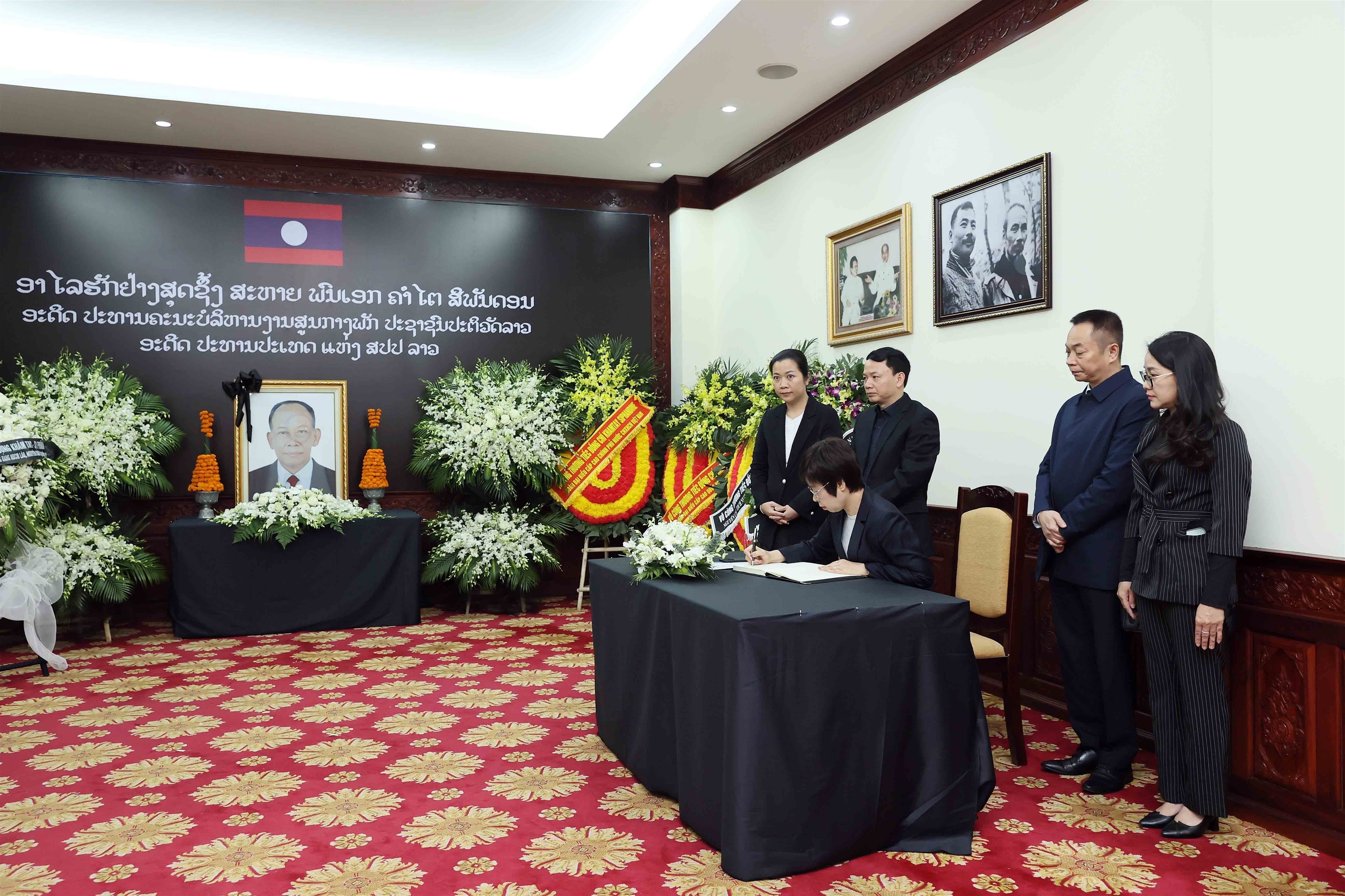 Sáng 4/4, tại Hà Nội, đoàn đại biểu Thông tấn xã Việt Nam (TTXVN) do đồng chí Vũ Việt Trang, Bí thư Đảng ủy, Tổng giám đốc dẫn đầu đến viếng nguyên Chủ tịch Ban Chấp hành Trung ương Đảng Nhân dân Cách mạng Lào, nguyên Chủ tịch nước Lào Khamtay Siphandone và ghi sổ tang chia buồn tại Đại sứ quán Lào tại Việt Nam.