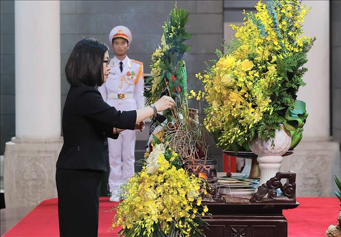 | Đoàn Thông tấn xã Việt Nam do Phó tổng giám đốc Đoàn Thị Tuyết Nhung dẫn đầu vào viếng nguyên Chủ tịch nước Trần Đức Lương, ngày 24/5 |