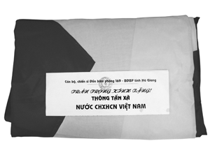 Lá quốc kỳ (rộng 54 m2, tương trưng cho 54 dân tộc trên đất nước Việt Nam) từng được treo trên đỉnh núi Rồng (Lũng Cú - Hà Giang), nơi địa đầu cực Bắc thiêng liêng của Tổ quốc, được cán bộ, chiến sĩ Đồn biên phòng 169 (Hà Giang) -bạn đọc thường xuyên của báo Tin Tức - gửi qua các phóng viên báo Tin Tức nhân chuyến công tác tại Hà Giang, tặng Thông tấn xã Việt Nam. |