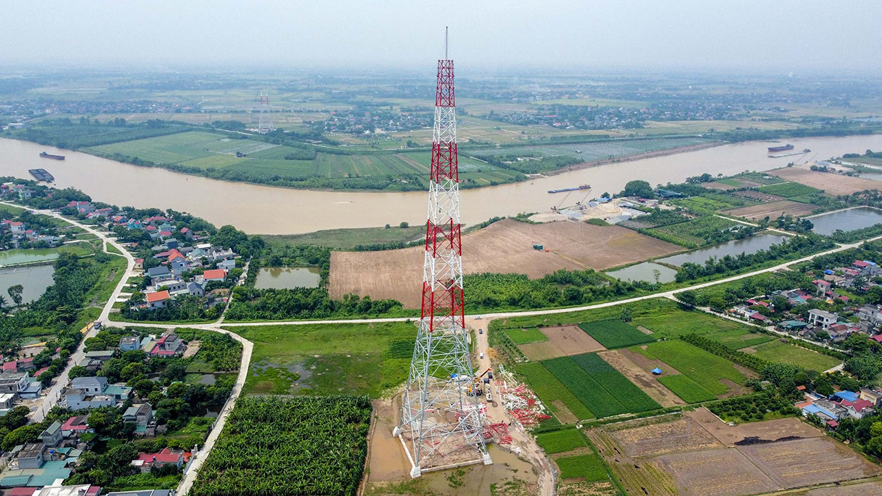 Cột 215 tuyến đường dây nhà máy Nhiệt điện Nam Định 1- Phố Nối nằm trên địa bàn xã Quỳnh Hoàng, huyện Quỳnh Phụ, tỉnh Thái Bình là một trong những cột cao nhất của dự án |