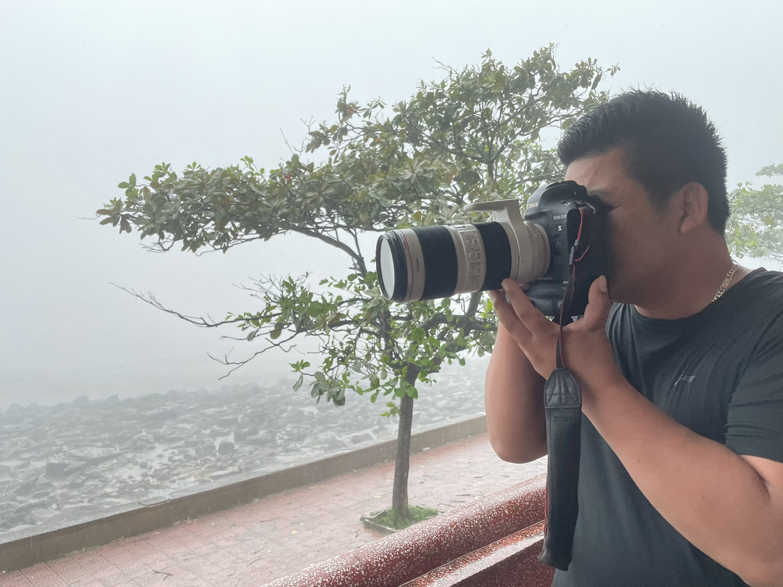 Phóng viên Minh Quyết tác nghiệp trong bão số 3 tại Hải Phòng, tháng 9/2024 |