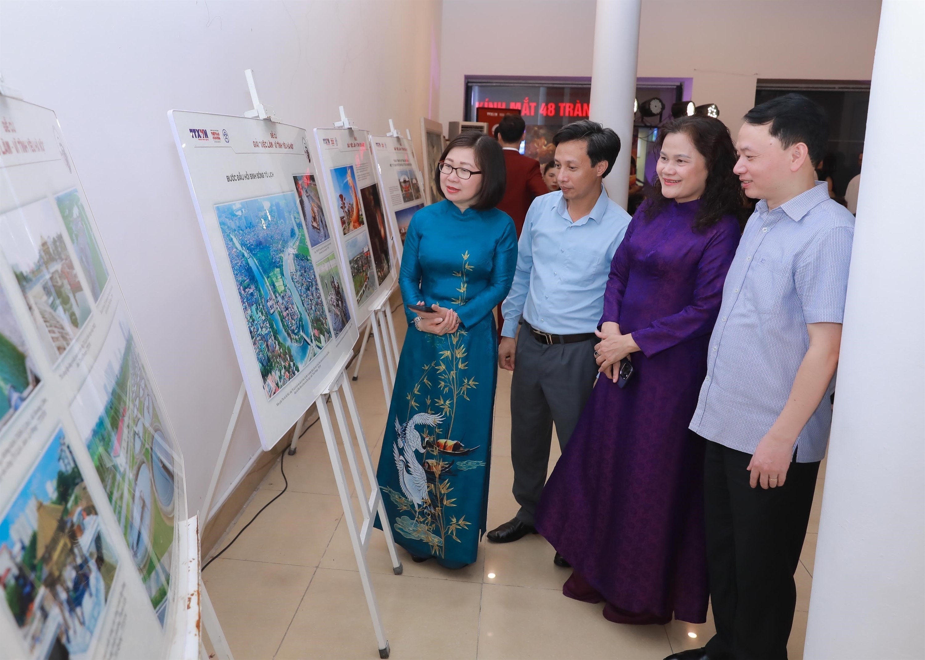 Phó tổng giám đốc TTXVN Đoàn Thị Tuyết Nhung và PGS.TS Bùi Hoài Sơn, Ủy viên thường trực Ủy ban Văn hoá, Giáo dục của Quốc hội, trao Giải Việc làm - Vì tình Yêu Hà Nội vinh danh "Trung tâm triển lãm Việt Nam - một “kỳ quan” mới tại Hà Nội" tại Lễ trao Giải thưởng Bùi Xuân Phái - Vì tình yêu Hà Nội lần thứ 18, tối 3/10 |