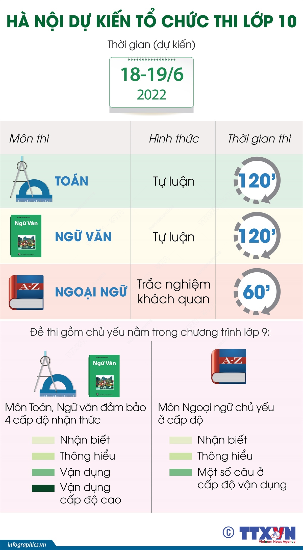 Hà Nội dự kiến tổ chức thi lớp 10 trong hai ngày 18 và 19/6/2022