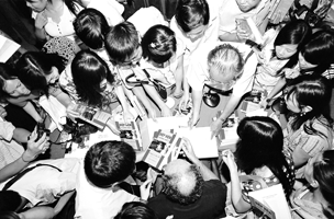 Giáo sư Larry Berman, tác giả cuốn sách "Điệp viên hoàn hảo" ký tặng sách bạn đọc Việt Nam