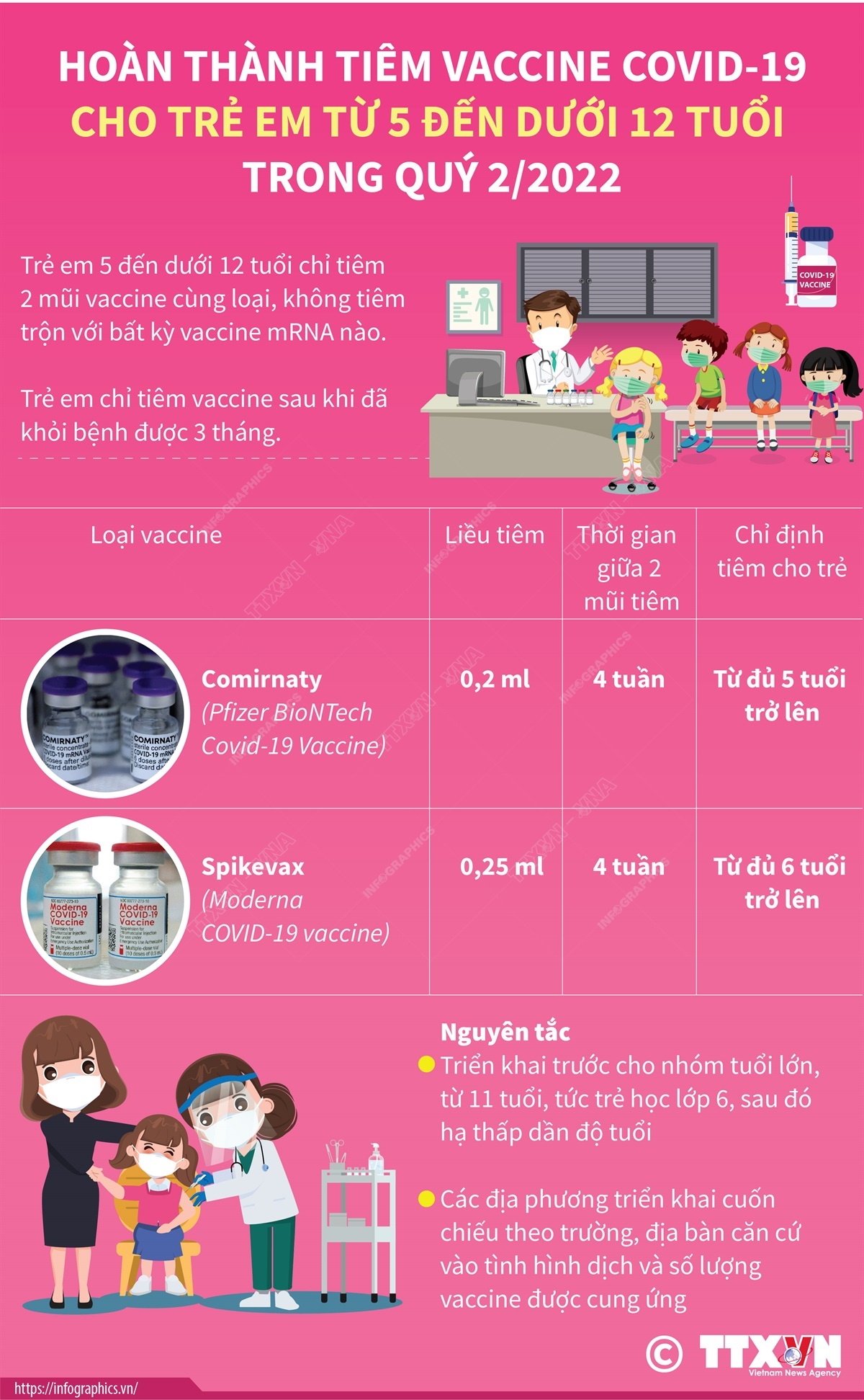 Hoàn thành tiêm vaccine COVID-19 cho trẻ em từ 5 đến dưới 12 tuổi trong quý 2/2022