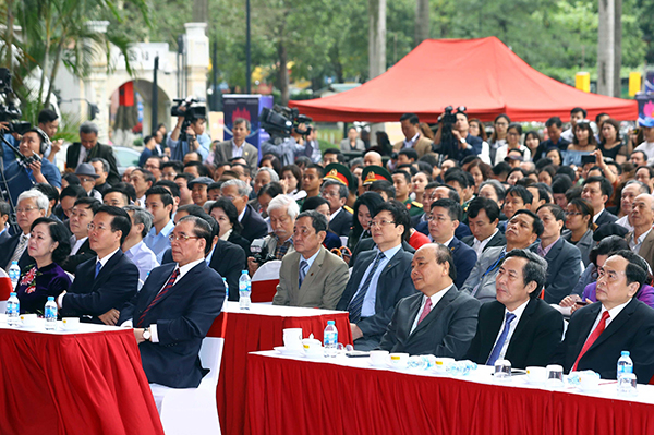 | Thủ tướng Nguyễn Xuân Phúc và các đại biểu dự khai mạc Hội báo toàn quốc 2019.Ảnh: Thống Nhất |