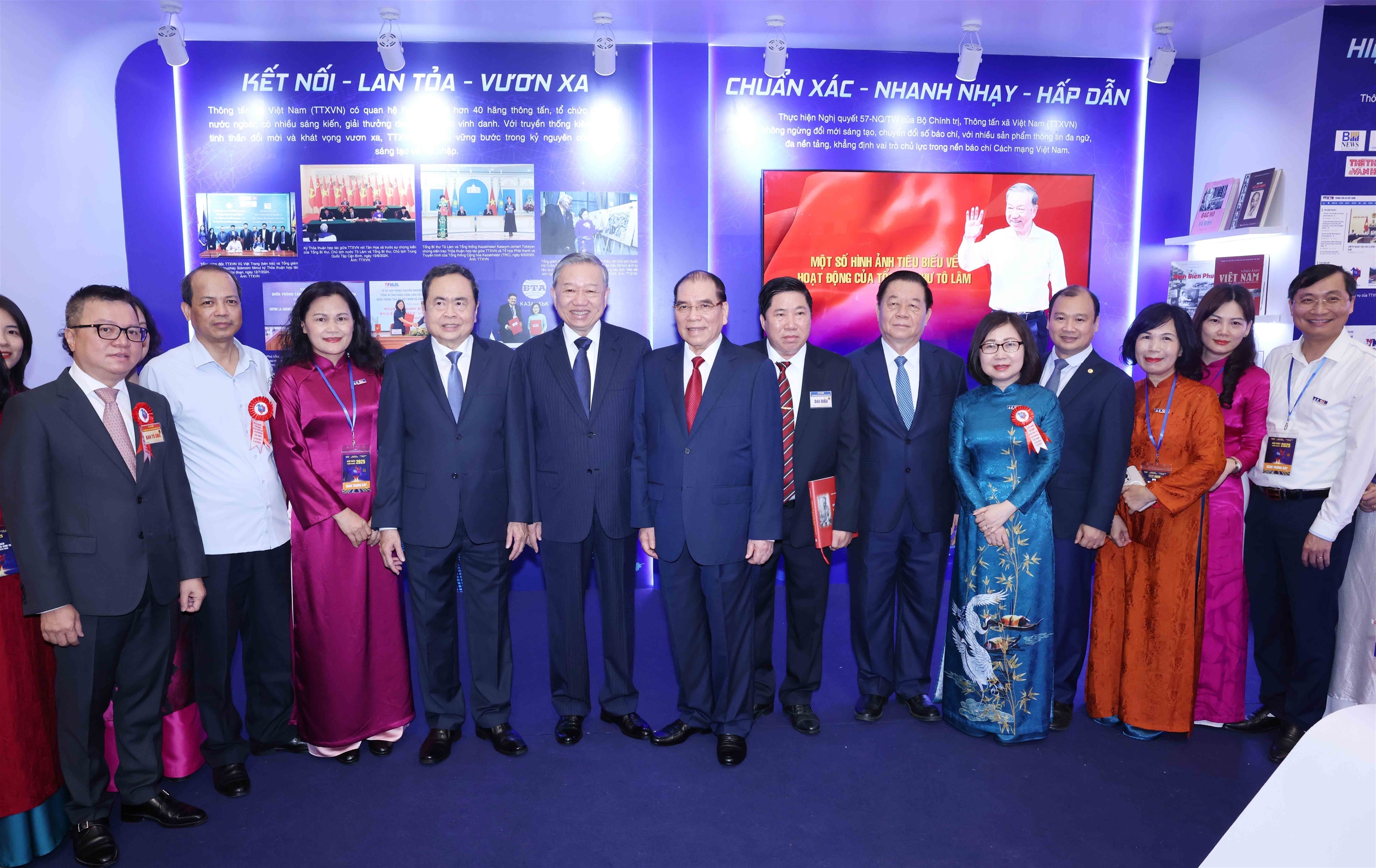 Đặc biệt, tại Hội Báo toàn quốc năm 2025, gian trưng bày của TTXVN đã vinh dự được đón tiếp các đồng chí lãnh đạo cao nhất của Đảng và Nhà nước đến tham quan, động viên những người làm báo Thông tấn.