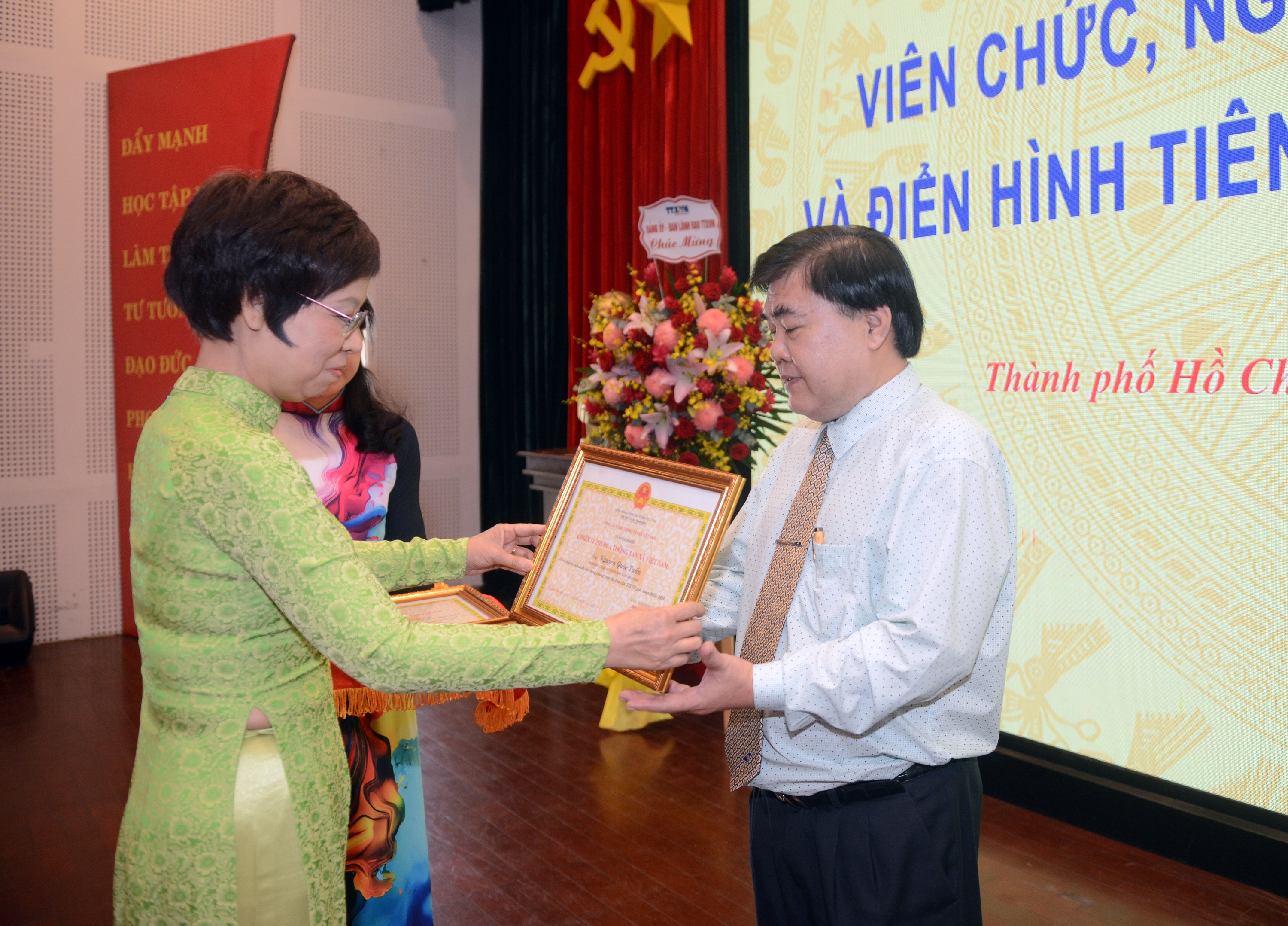 | Bí thư Đảng ủy, Tổng giám đốc TTXVN Vũ Việt Trang trao Danh hiệu Chiến sĩ thi đua TTXVN tặng Giám đốc Cơ quan khu vực phía Nam Nguyễn Quốc Tuấn, ngày 20/2 |