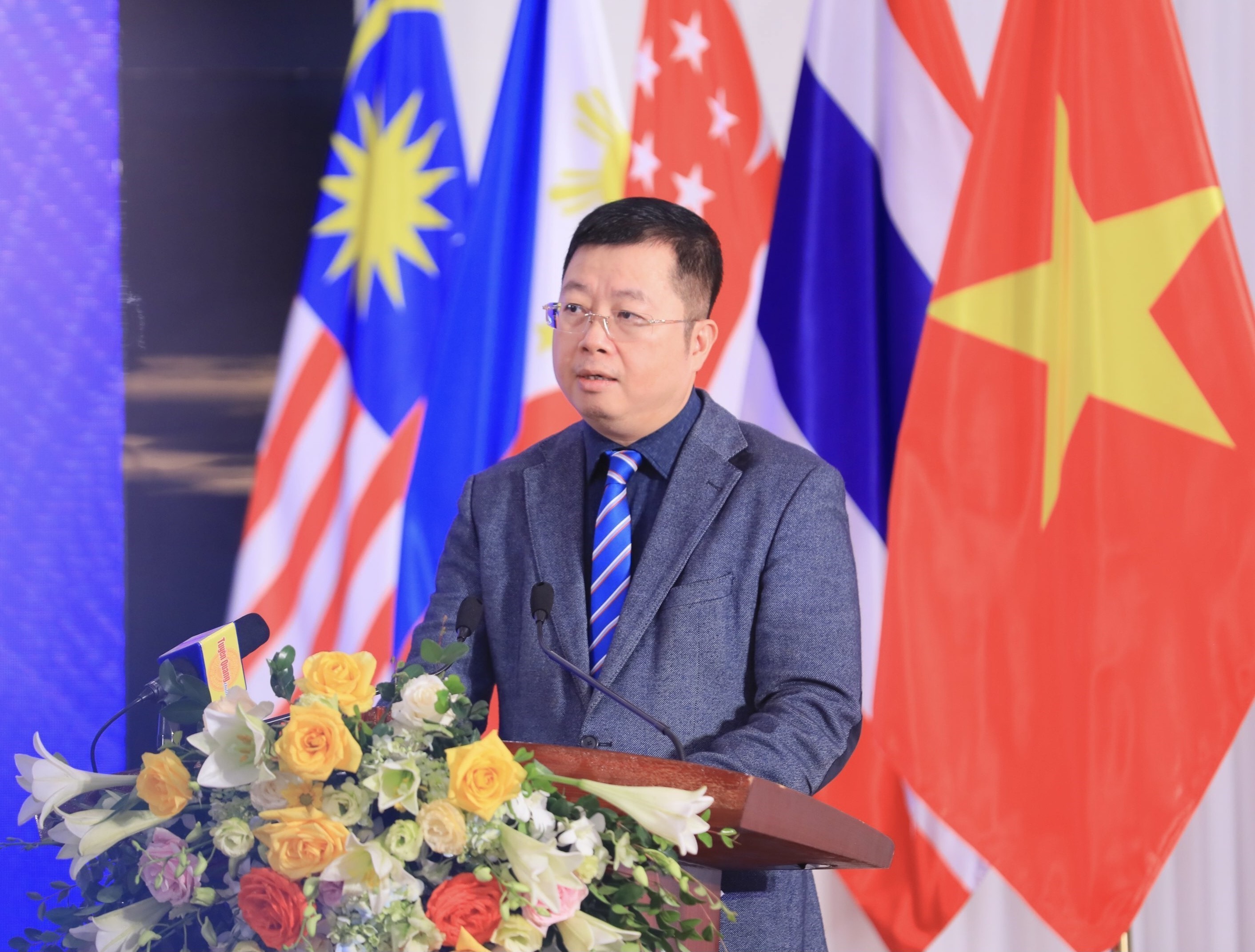 Tổng biên tập báo điện tử VietnamPlus Trần Tiến Duẩn phát biểu tại hội thảo báo chí quốc tế “Quản trị tòa soạn báo chí số: Lý luận, thực tiễn, kinh nghiệm tại khu vực ASEAN”, ngày 7/12 |
