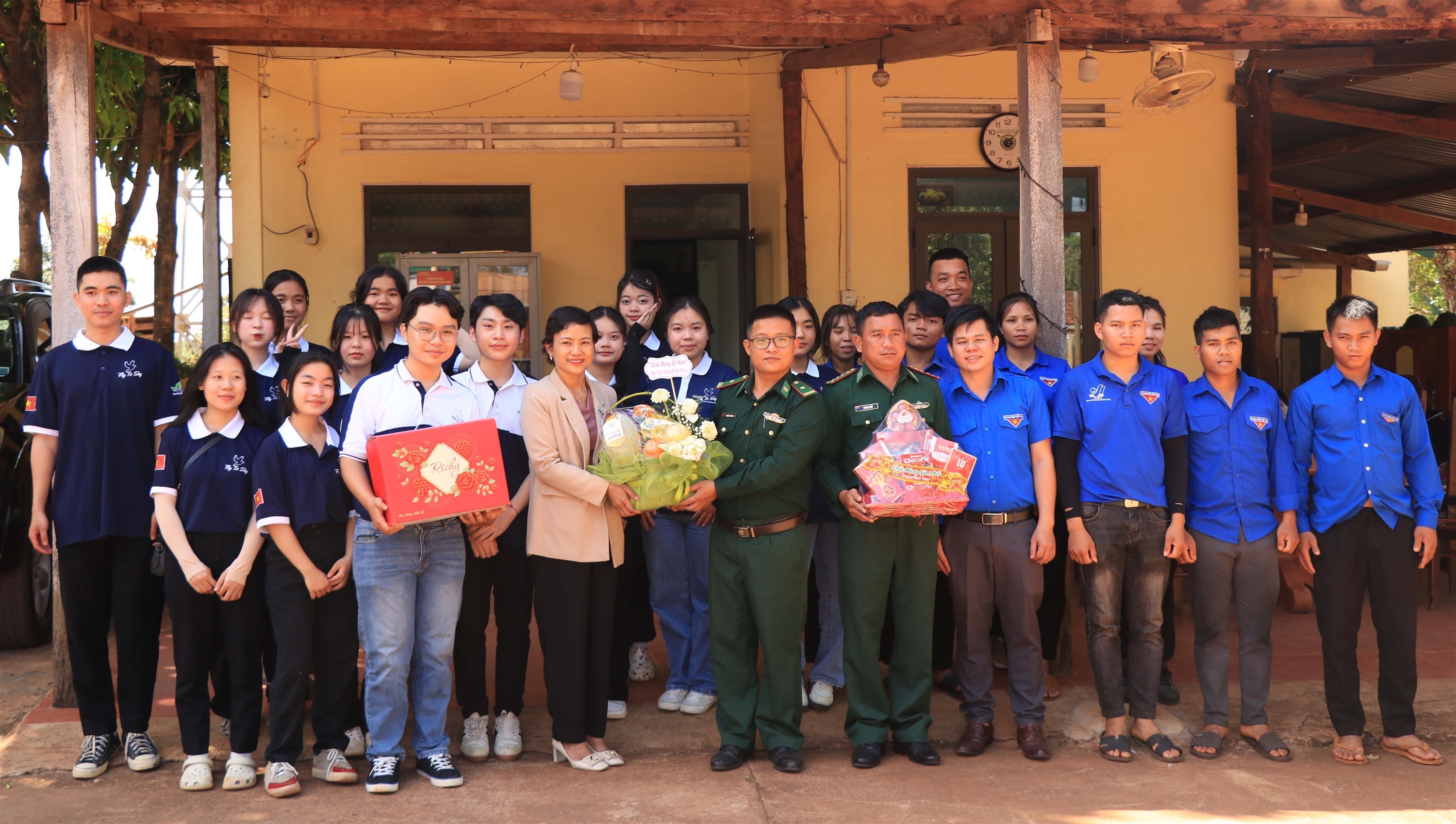 | Ban tổ chức trao quà tặng học sinh trường Tiểu học Cù Chính Lan, xã Ia Chía, huyện Ia Grai, tỉnh Gia Lai tại chương trình “Tháng Ba biên giới”, ngày 9/3 |