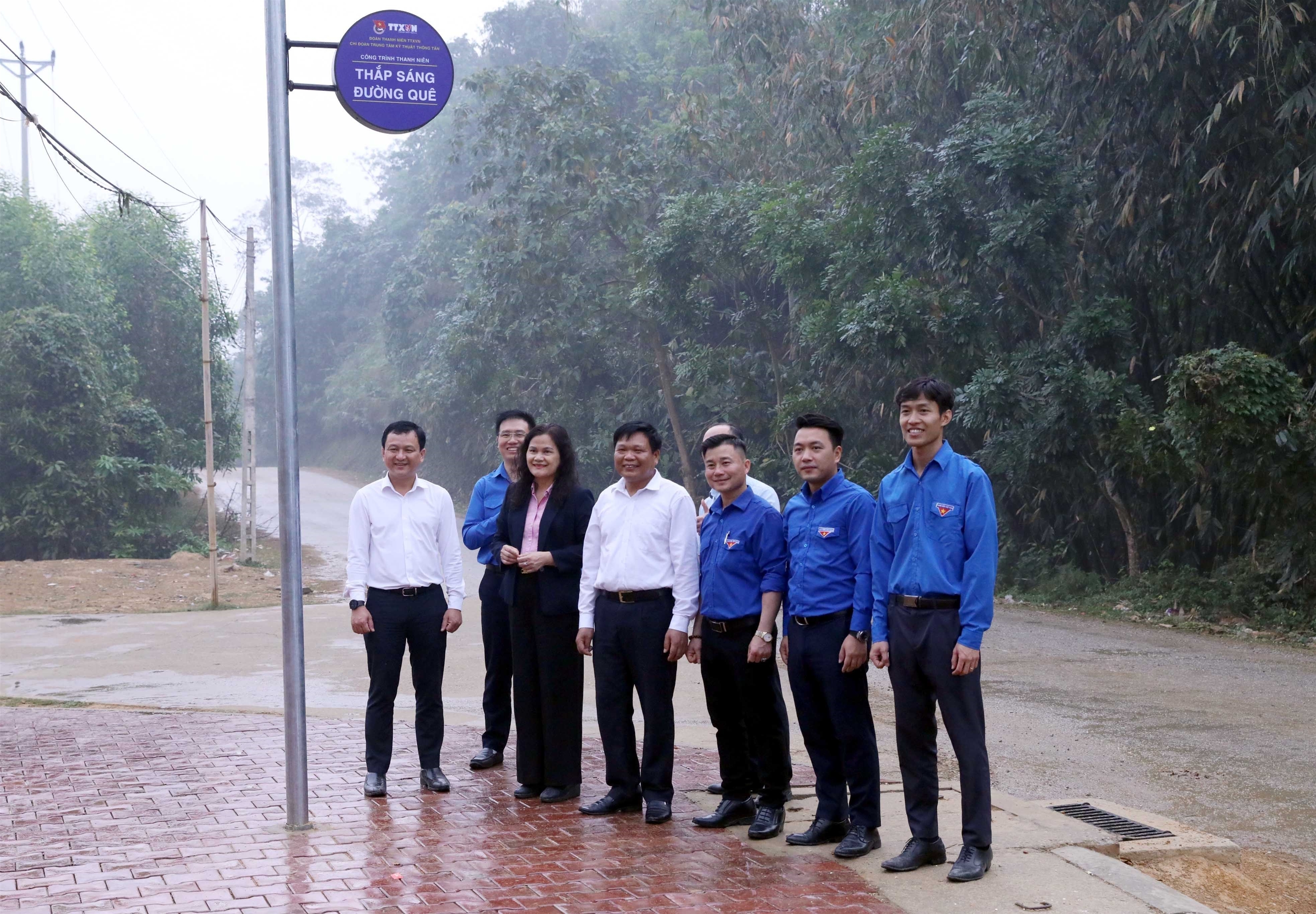 | Phó tổng giám đốc TTXVN Nguyễn Thị Sự và đoàn công tác thăm công trình thanh niên "Thắp sáng đường quê" tại xã Trung Yên, huyện Sơn Dương, tỉnh Tuyên Quang, ngày 25/3 |