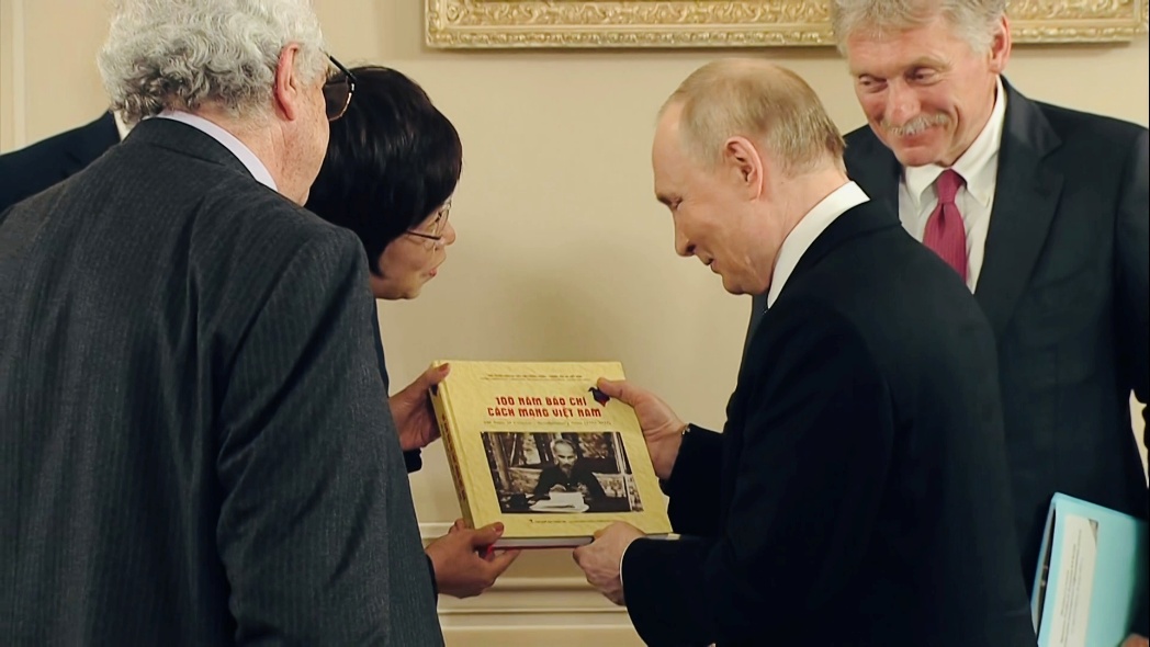 Tổng giám đốc TTXVN Vũ Việt Trang trân trọng tặng Tổng thống LB Nga V. Putin cuốn sách ảnh “100 năm Báo chí Cách mạng Việt Nam”, ấn phẩm tư liệu song ngữ do Nhà xuất bản Thông tấn biên soạn và phát hành nhân kỷ niệm 100 năm Báo chí Cách mạng Việt Nam |