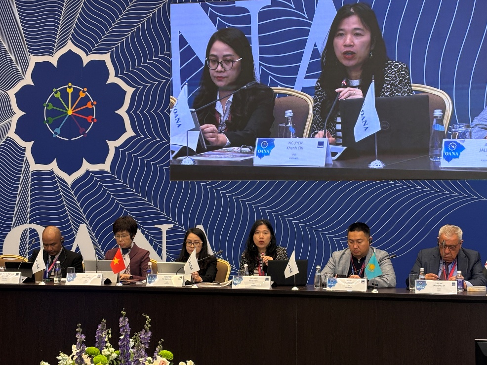 Nhà báo Nguyễn Khánh Chi, tòa soạn Báo Việt Nam News and Law, trình bày tham luận tại Đại hội đồng OANA lần thứ 19 |