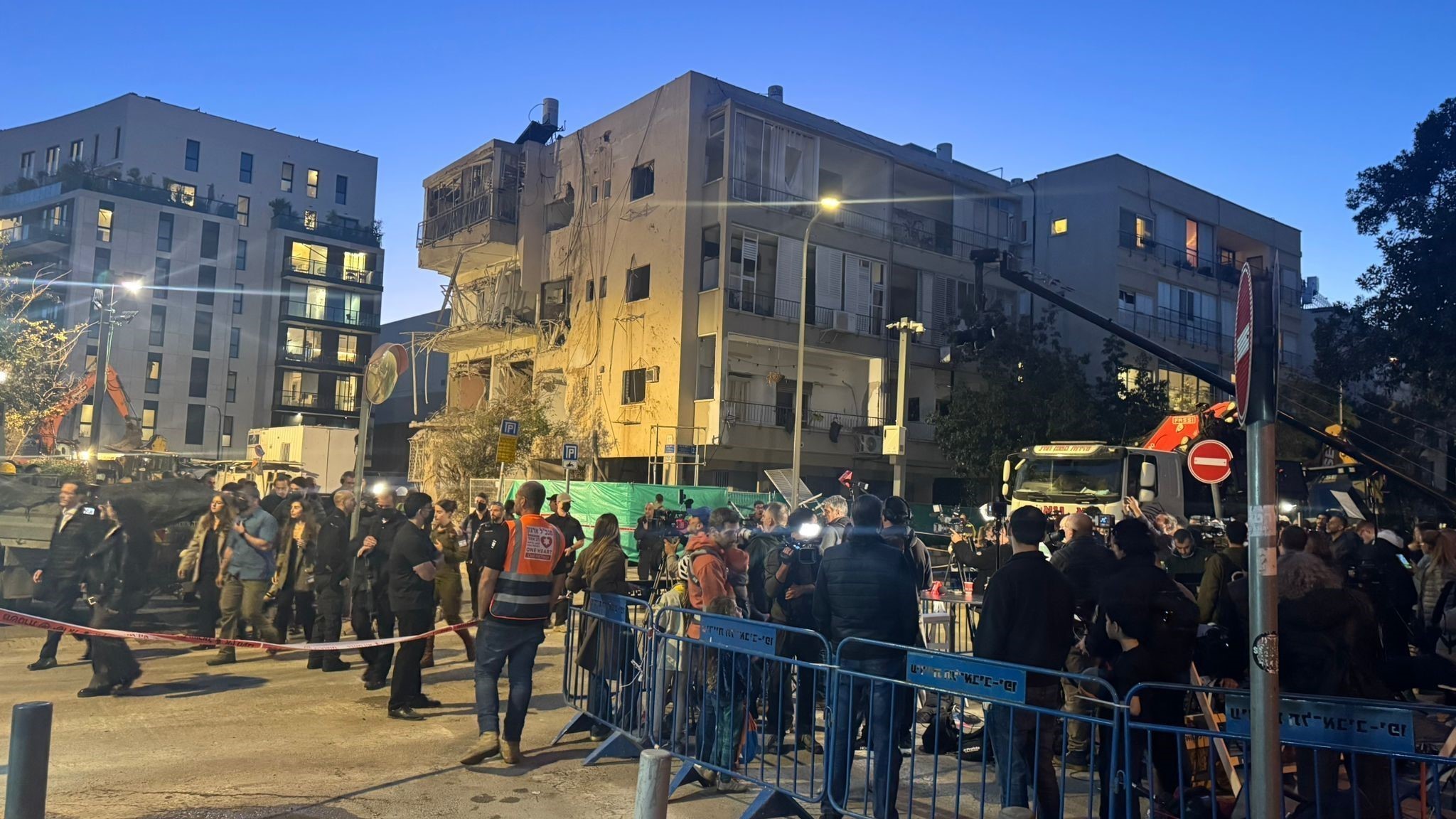 | Khu vực bị trúng tên lửa tại trung tâm Thành phố Tel Aviv (Israel). Ảnh do phóng viên Trần Thanh Bình chụp |