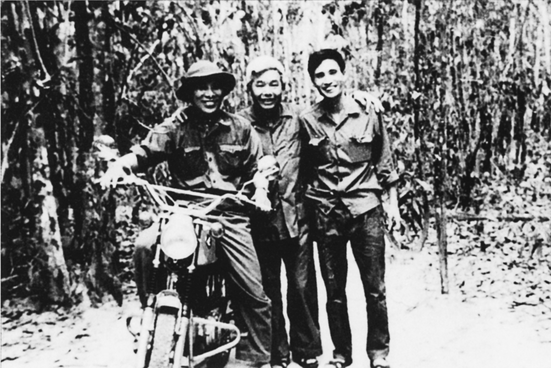 | Tổng biên tập Đào Tùng (đứng giữa) cùng các phóng viên Văn Bảo (trái) và Trần Mai Hạnh tại căn cứ TTXGP chuẩn bị tiến vào giải phóng Sài Gòn, tháng 4/1975 |