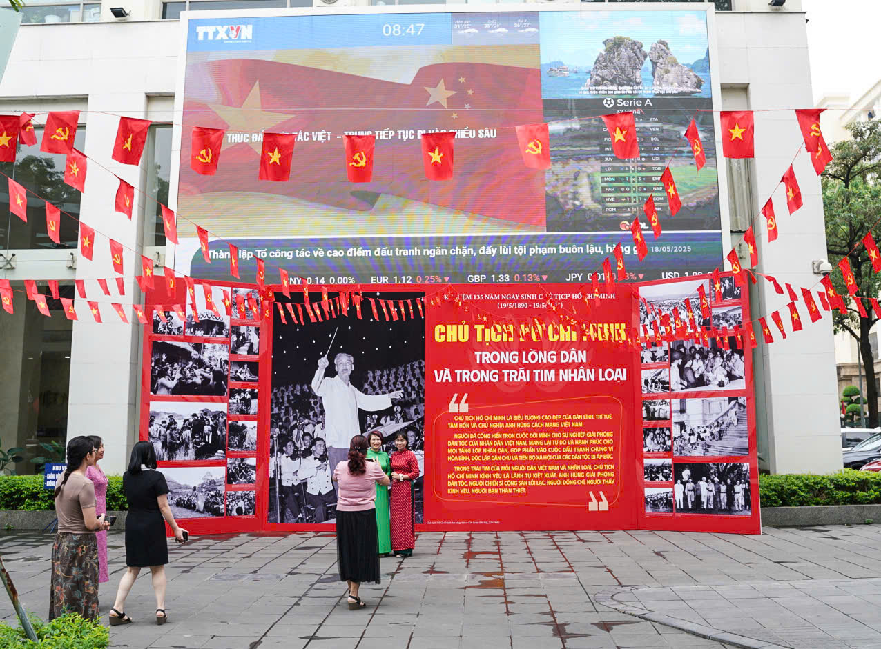 Ngày 18/5, nhân kỷ niệm 135 năm Ngày sinh Chủ tịch Hồ Chí Minh (19/5/1890-19/5/2025), tại Trung tâm Thông tấn quốc gia, Hà Nội, Ban biên tập Ảnh Thông tấn xã Việt Nam (TTXVN) đã tổ chức trưng bày ảnh với chủ đề “Chủ tịch Hồ Chí Minh trong lòng dân và trong trái tim nhân loại”, thu hút đông đảo người dân Thủ đô, du khách tham quan và lưu lại những khoảnh khắc ý nghĩa mừng sinh nhật Bác.