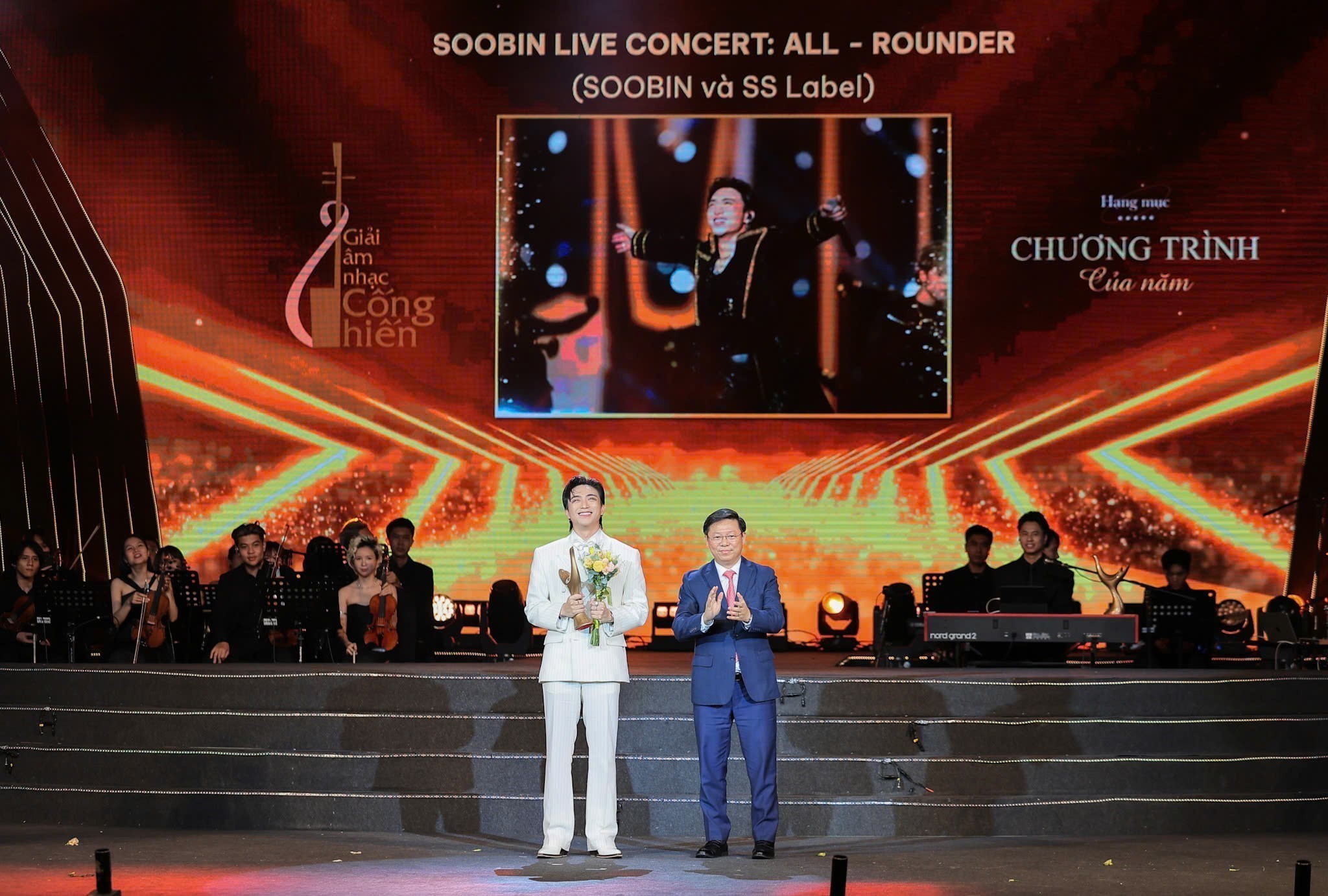 | Uỷ viên Trung ương Đảng, Phó trưởng Ban Tuyên giáo và Dân vận Trung ương Trần Thanh Lâm công bố và trao giải hạng mục Chương trình của năm cho SooBin live Concert: All - Rounder (SooBin và SS Label) tại Lễ trao Giải Cống hiến lần thứ 20 - 2026 |
