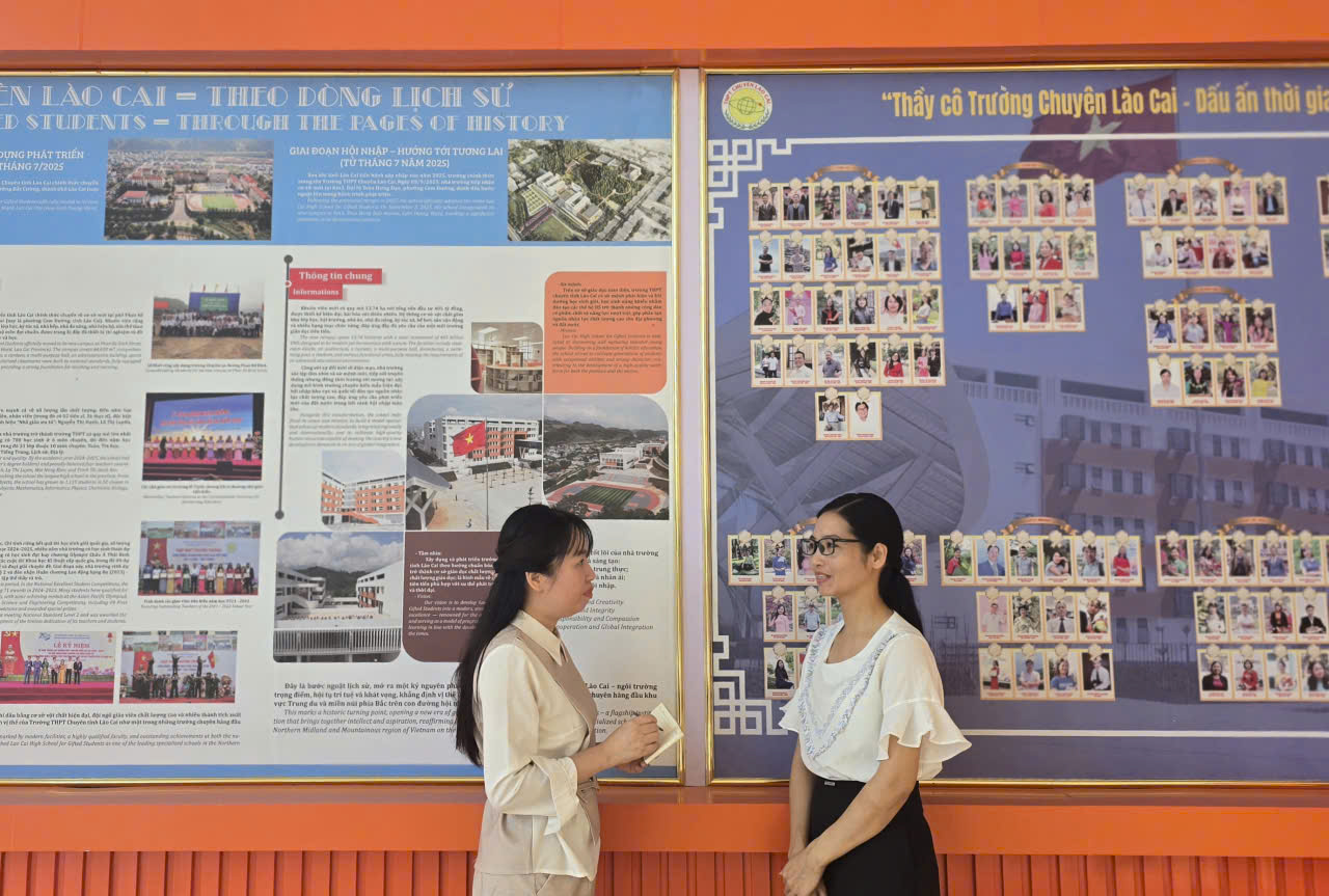 | Phóng viên Lục Hương Thu phỏng vấn cô giáo Đinh Thị Quỳnh Liên, trường THPT Chuyên Lào Cai - phụ trách nhóm nghiên cứu, tháng 3/2025 |
