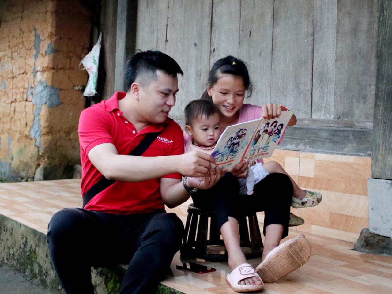 Phóng viên Báo điện tử VietnamPlus Võ Mạnh Hùng trò chuyện với các em nhỏ xã Hồ Thầu, huyện Tam Đường, tỉnh Lai Châu, năm 2022 |