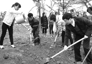 | Đoàn viên thanh niên TTXVN trồng cây tai lễ phát động Tết trồng cây, Làng văn hóa các dân tộc Việt Nam, Đồng Mô, Sơn Tây,Hà Nội. |