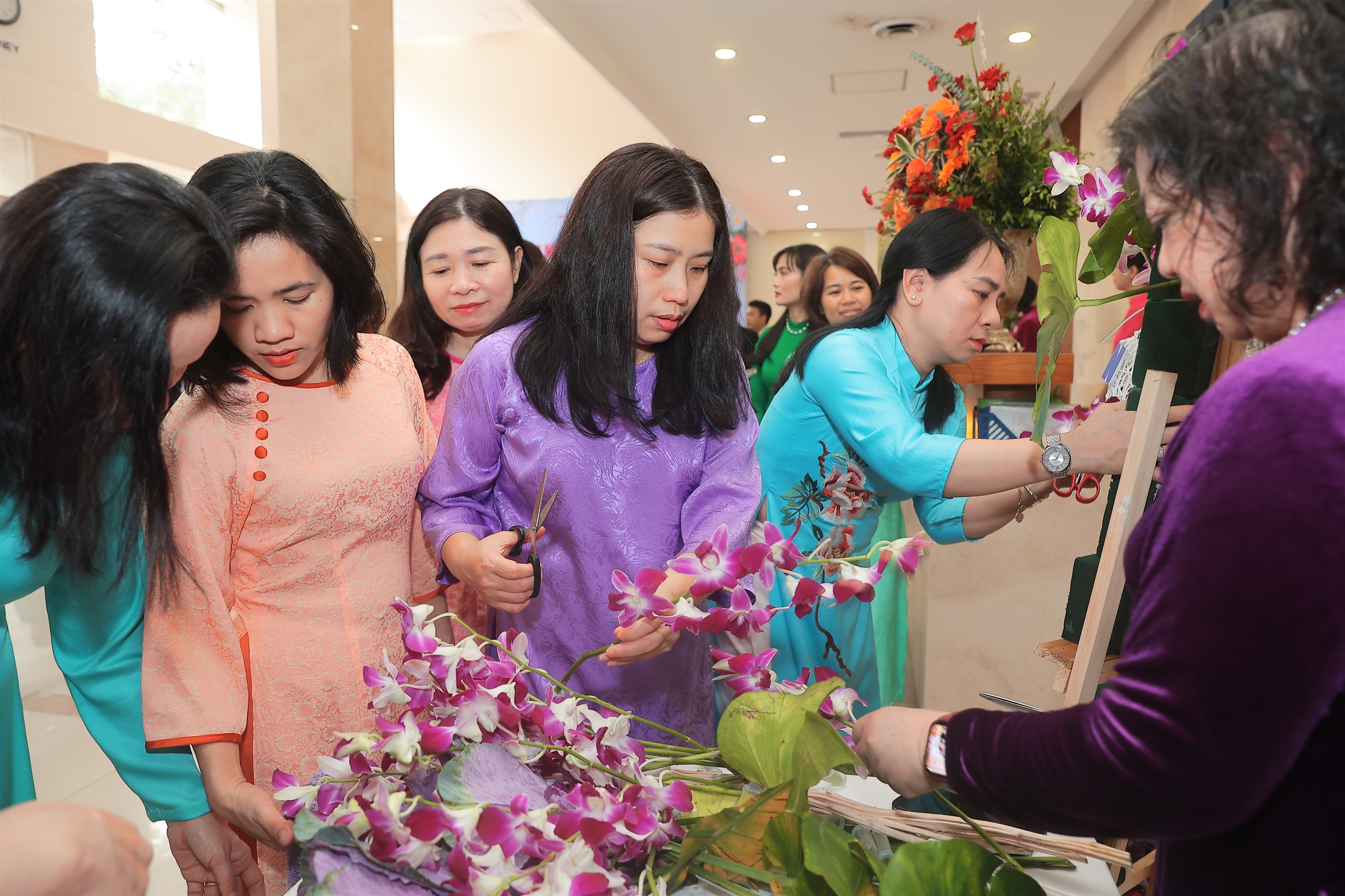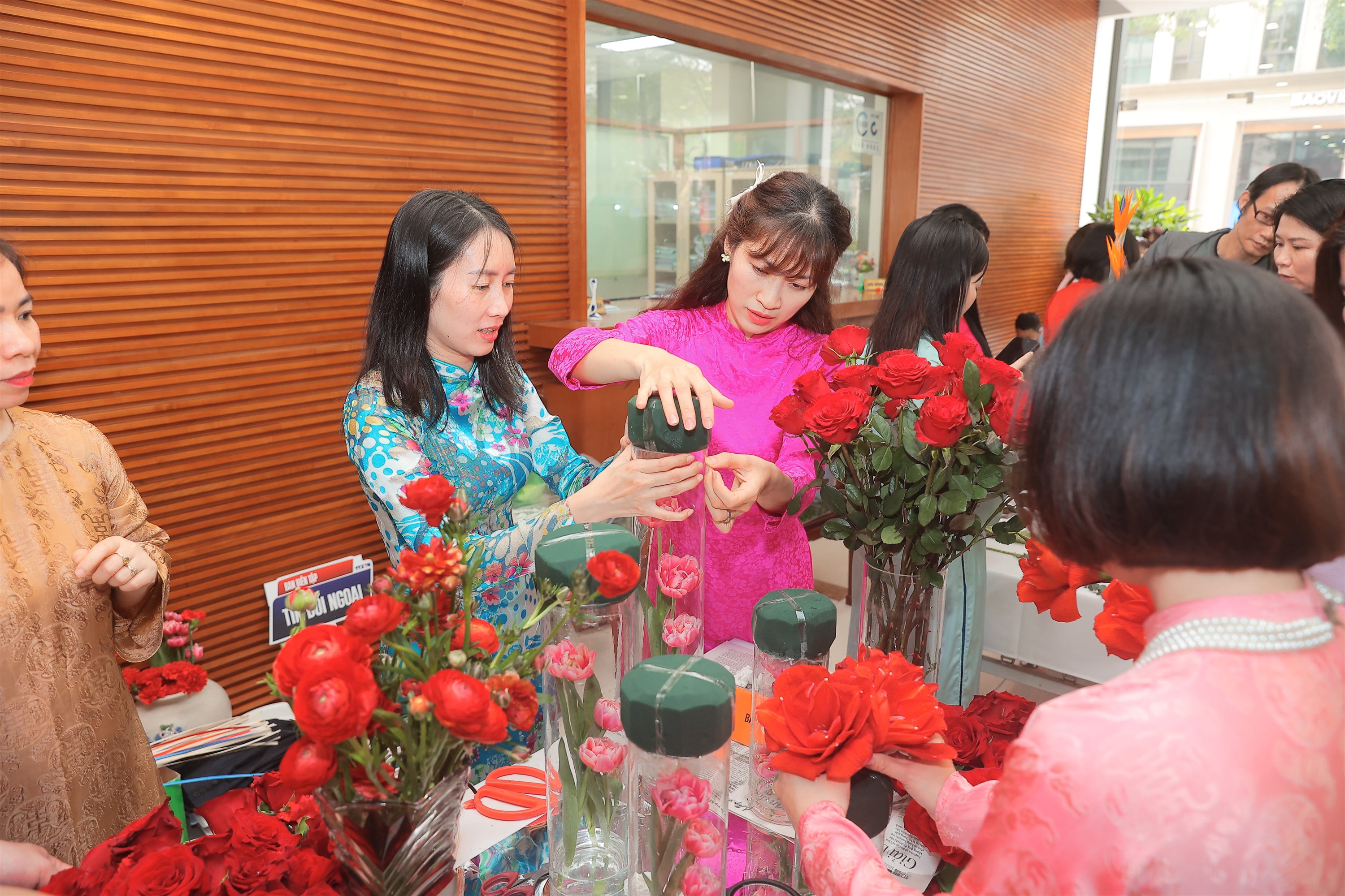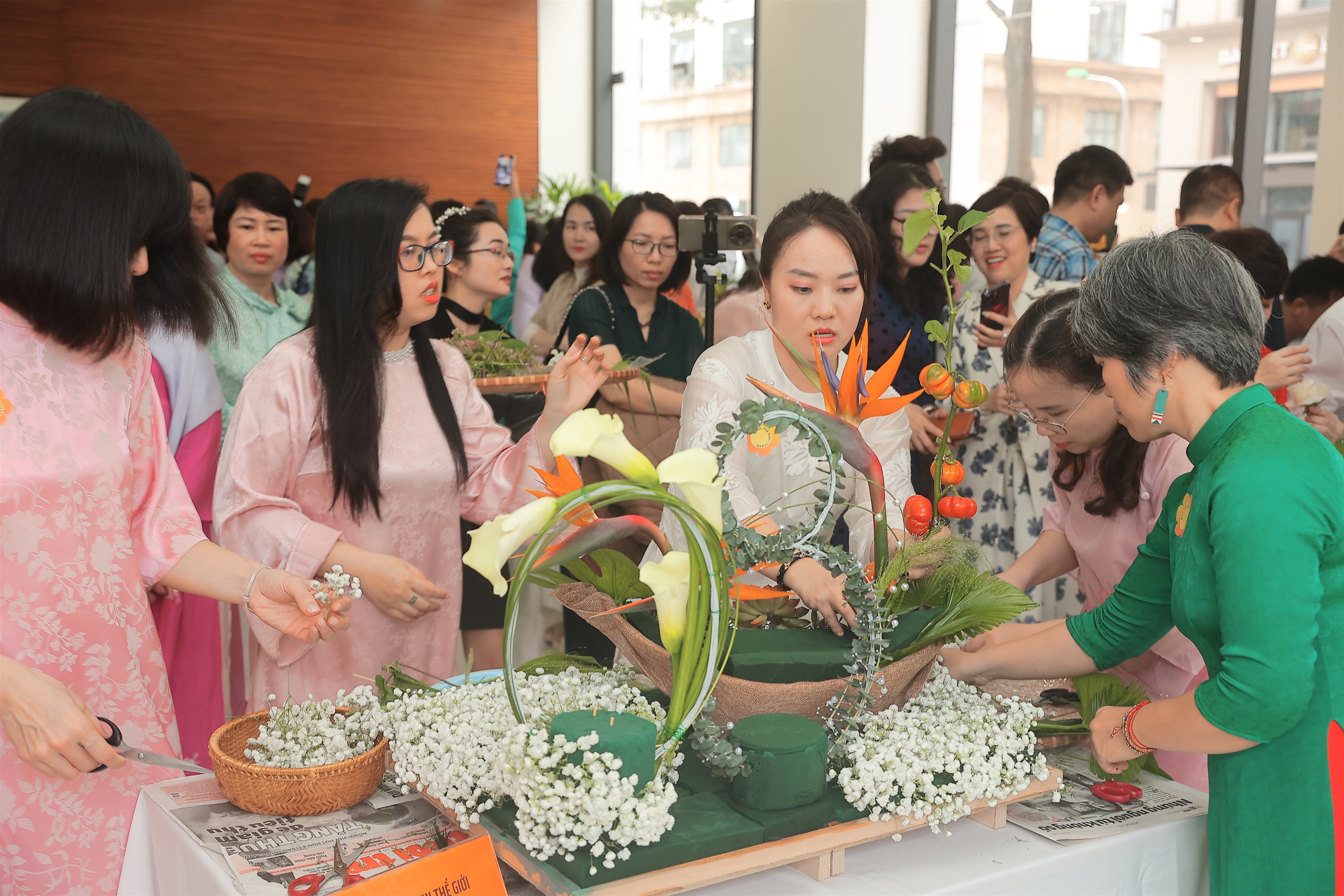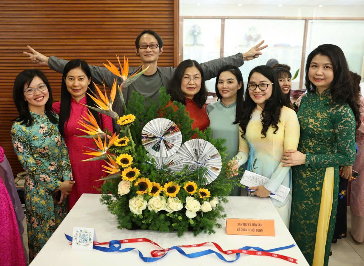 Phái đẹp TTXVN hưởng ứng Tuần lễ Áo dài và trổ tài cắm hoa mừng ngày Quốc tế phụ nữ 8/3