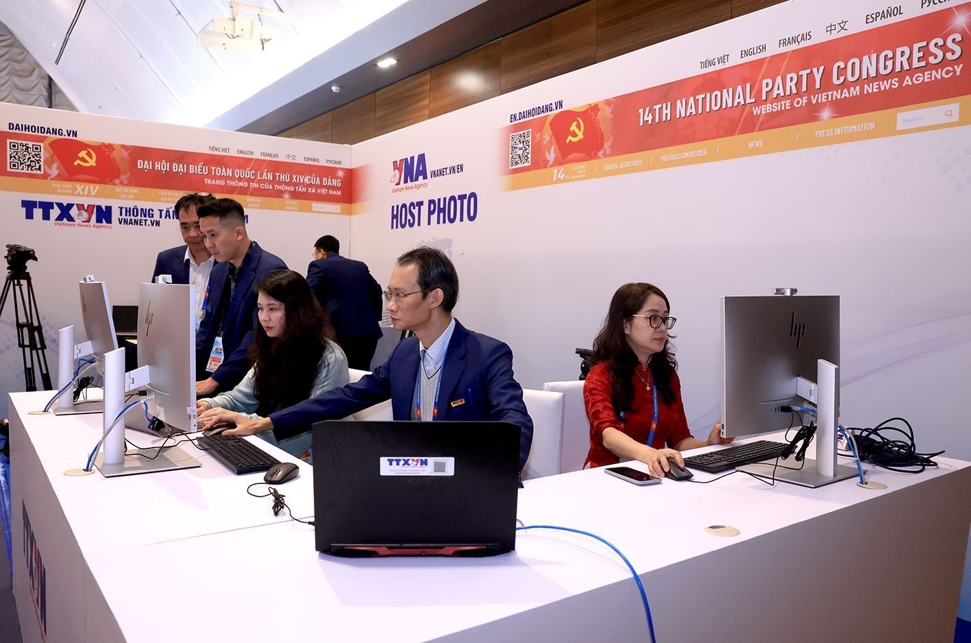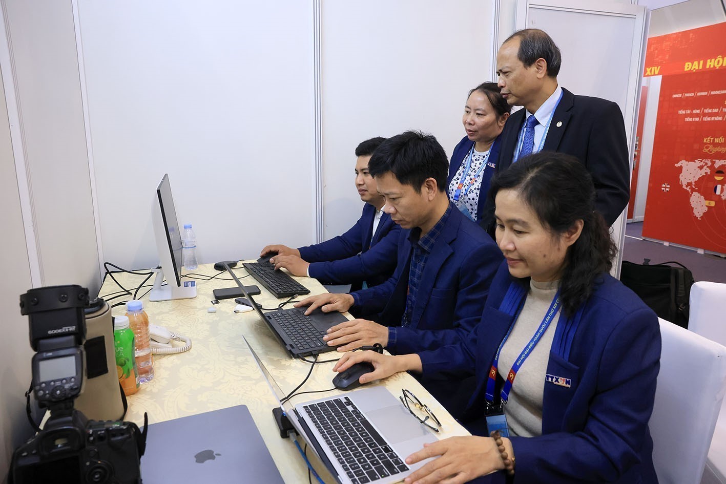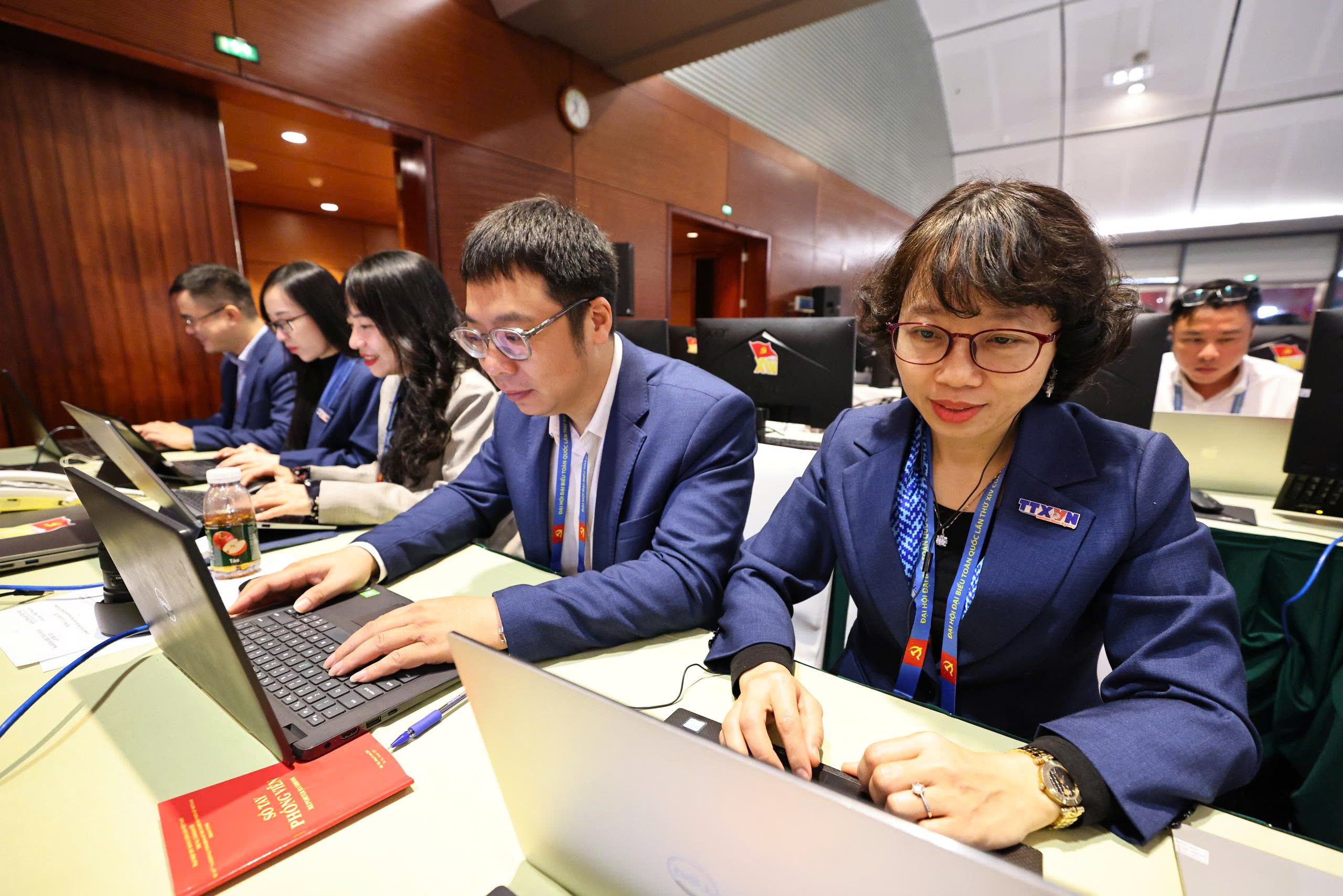 Phóng viên TTXVN tác nghiệp tại Đại hội XIV của Đảng