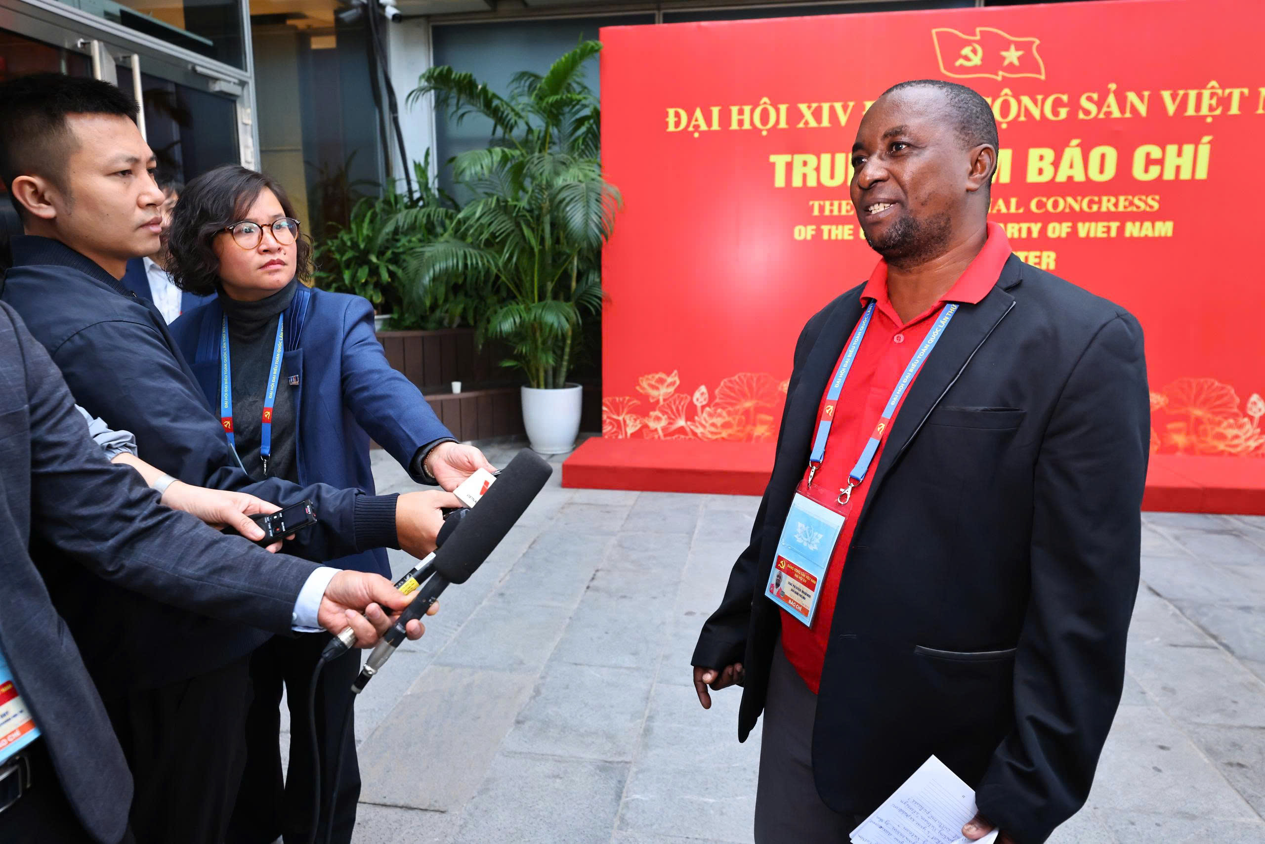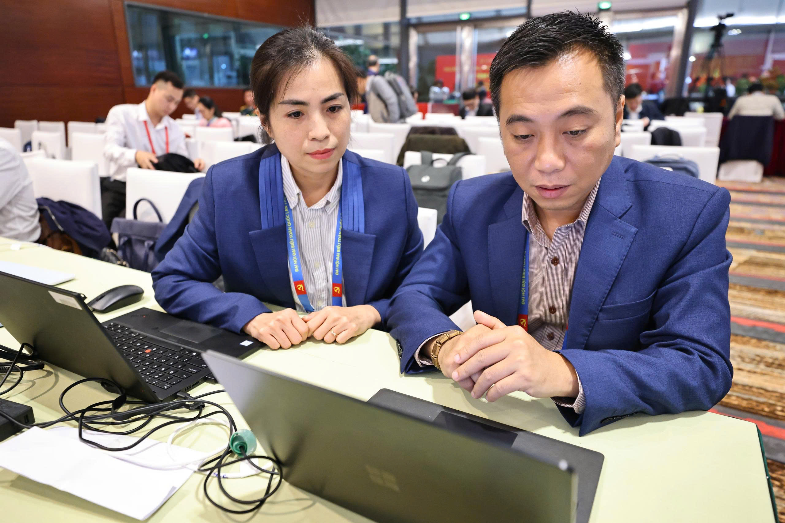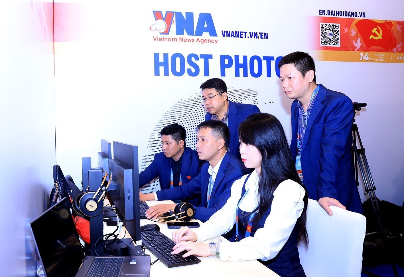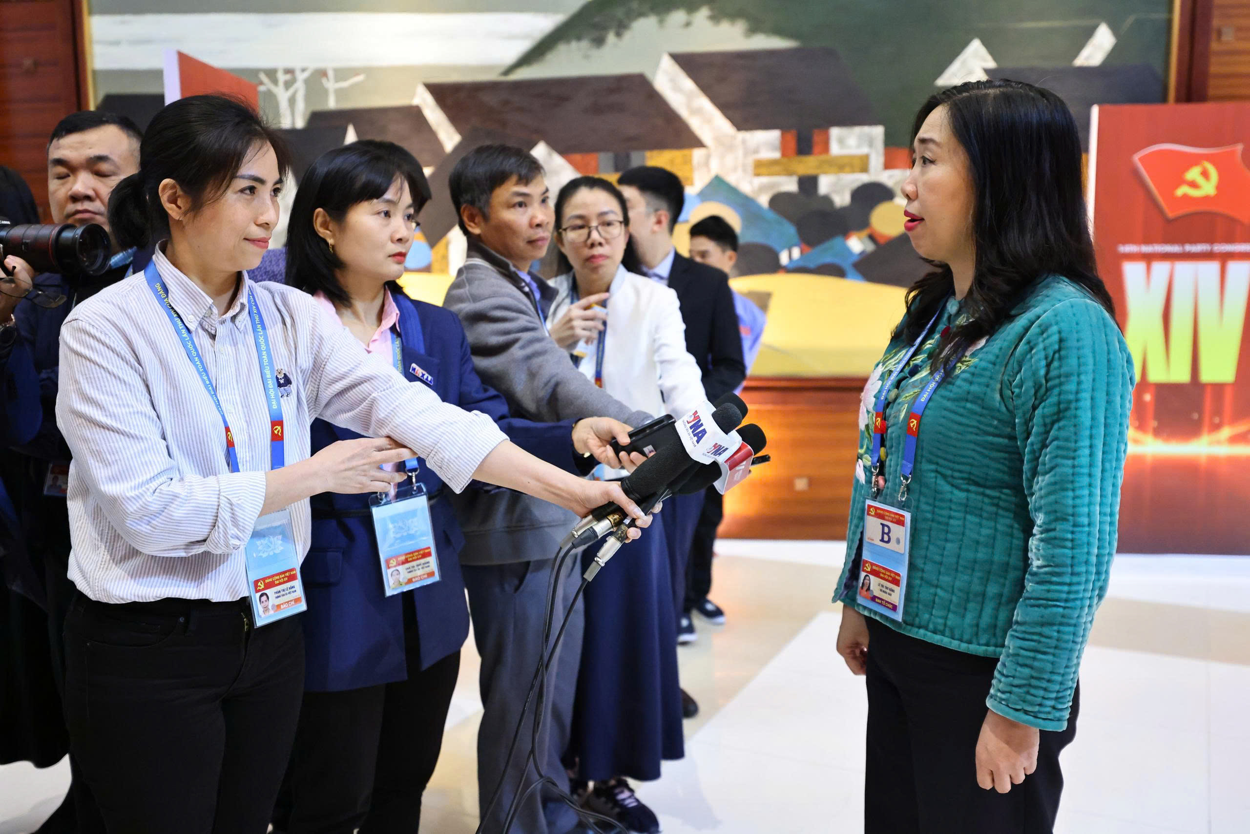 Phóng viên TTXVN tác nghiệp tại Đại hội XIV của Đảng