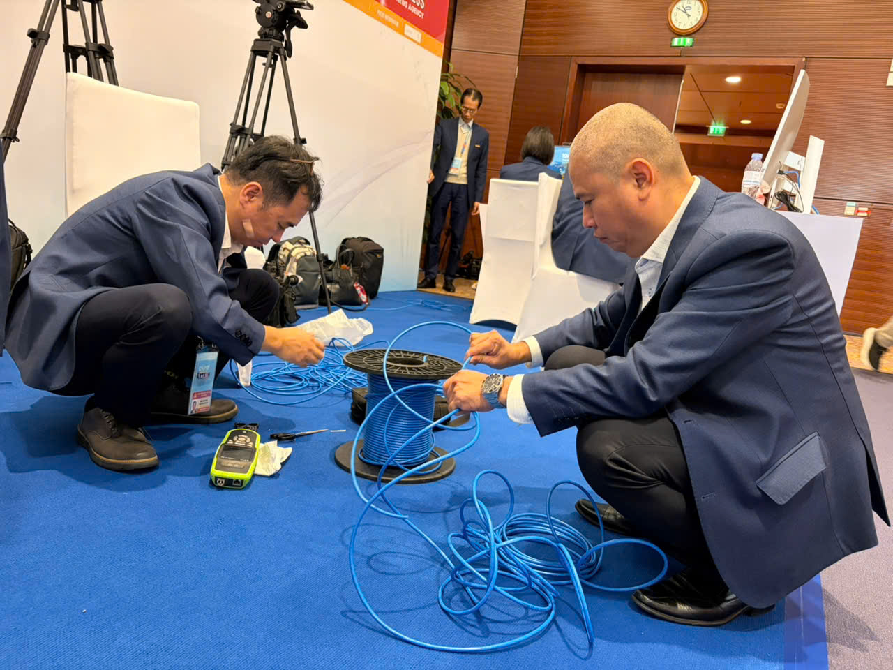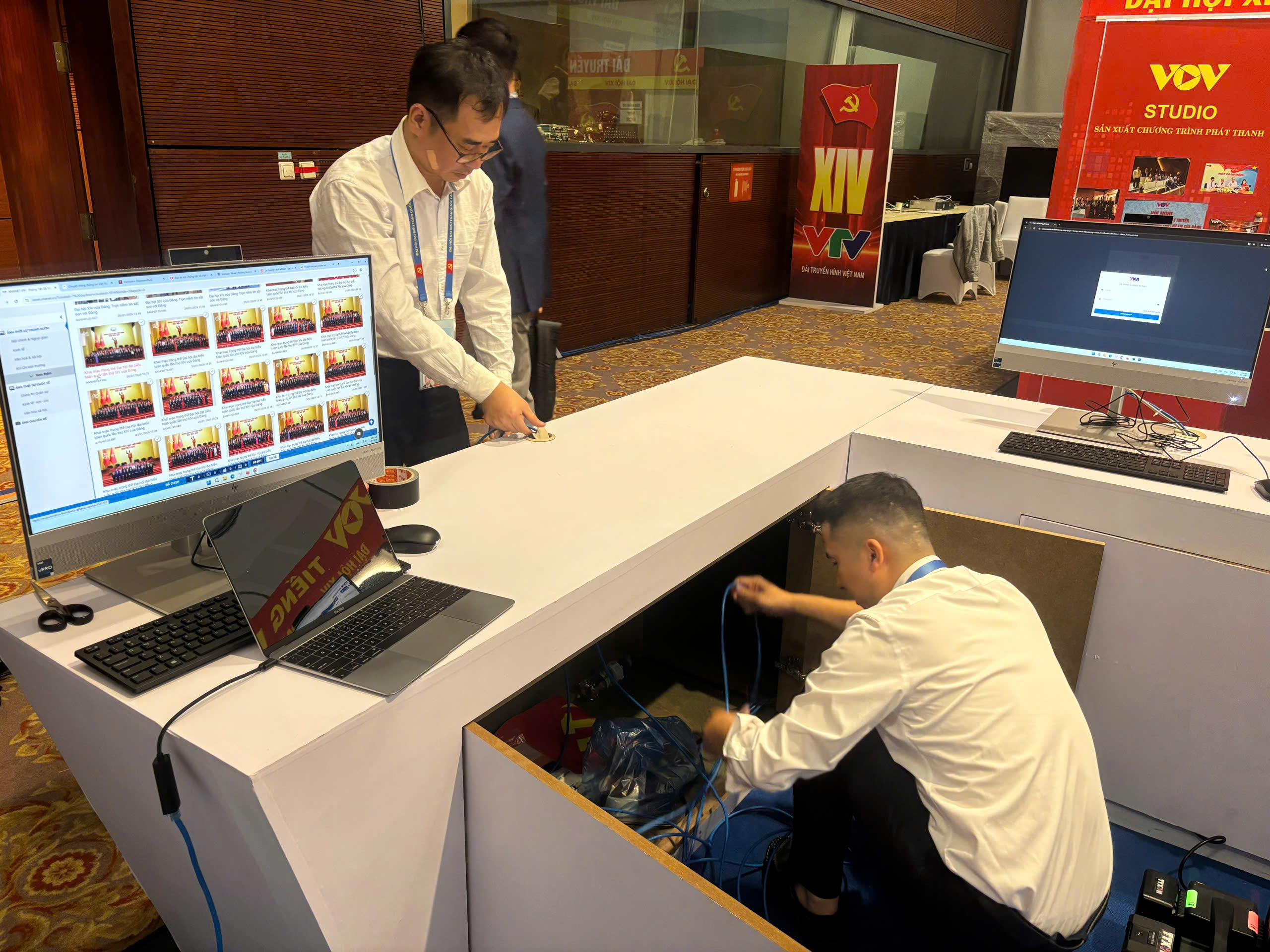 Một số hình ảnh phóng viên, kỹ thuật viên TTXVN tác nghiệp tại Đại hội lần thứ XIV của Đảng, ngày 19 và 20/1/2026: