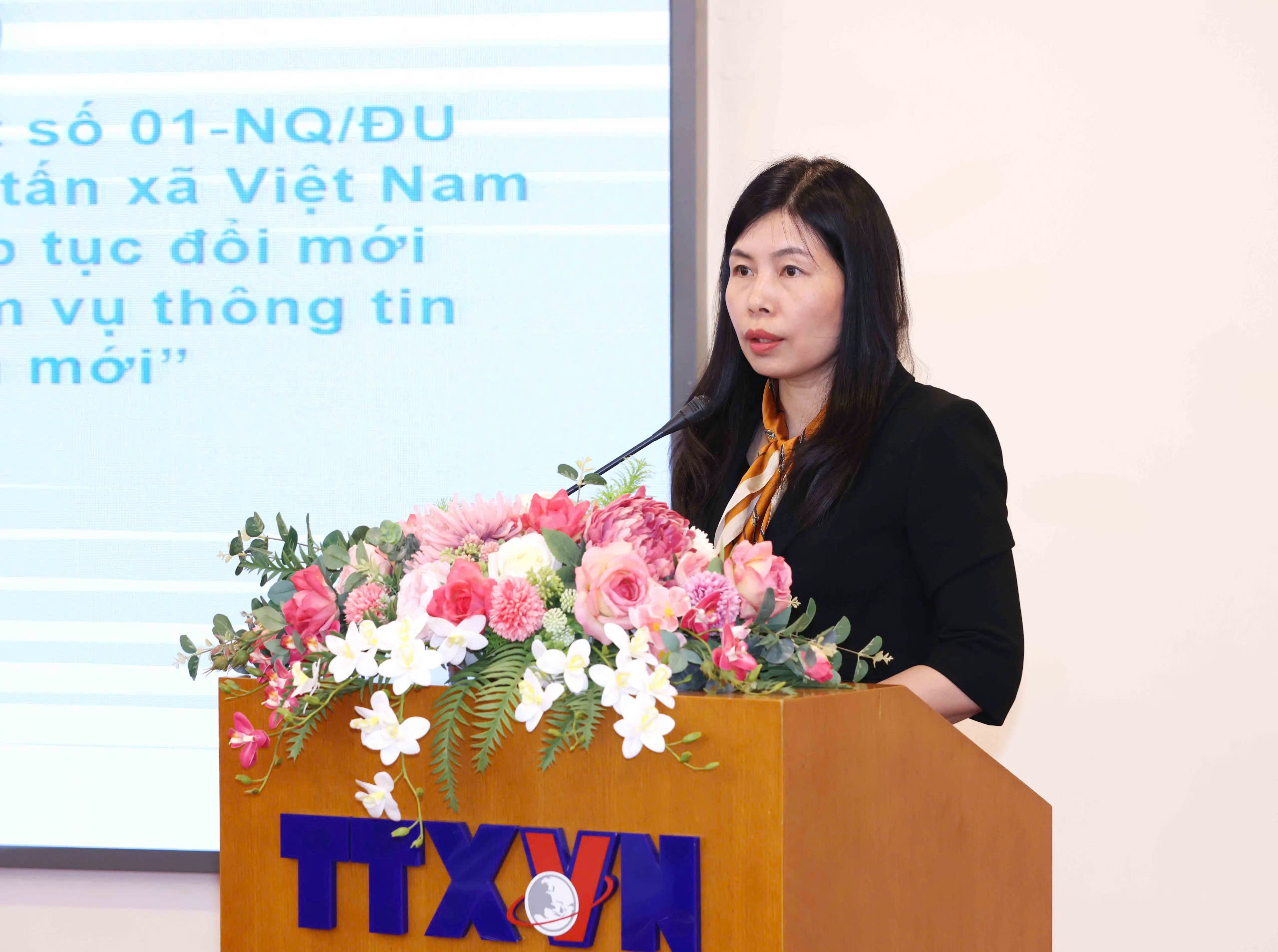 Trình bày báo cáo sơ kết 3 năm thực hiện Nghị quyết số 01, Phó bí thư Đảng ủy Chuyên trách Đỗ Thị Trang nêu rõ: Trước sự phát triển mạnh mẽ, cạnh tranh thông tin và yêu cầu nhiệm vụ trong tình hình mới, ngày 15/12/2021, Đảng ủy TTXVN đã ban hành Nghị quyết số 01 nhằm thực hiện tốt chức năng, nhiệm vụ của cơ quan thông tấn quốc gia, khẳng định vị thế thông tin chiến lược của TTXVN, nâng cao hiệu quả thông tin, định hướng dư luận xã hội, xây dựng, hoạch định các chủ trương, chính sách của Đảng, Nhà nước.