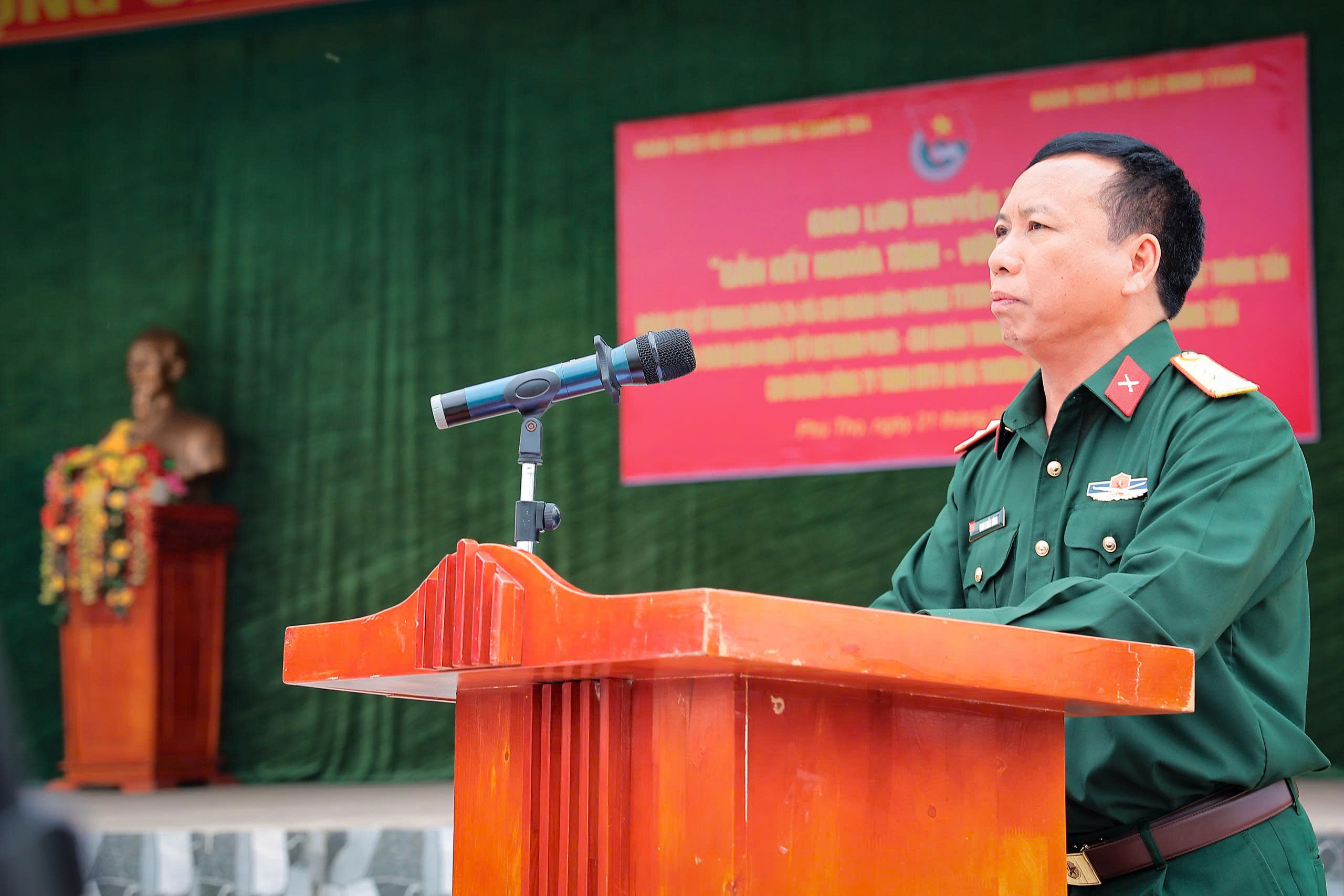 | Phó tổng giám đốc TTXVN Nguyễn Tuấn Hùng phát biểu tại Chương trình giao lưu “Gắn kết nghĩa tình - Vững bước sắt son" của tuổi trẻ TTXVN và Sư đoàn 304, ngày 21/3 |