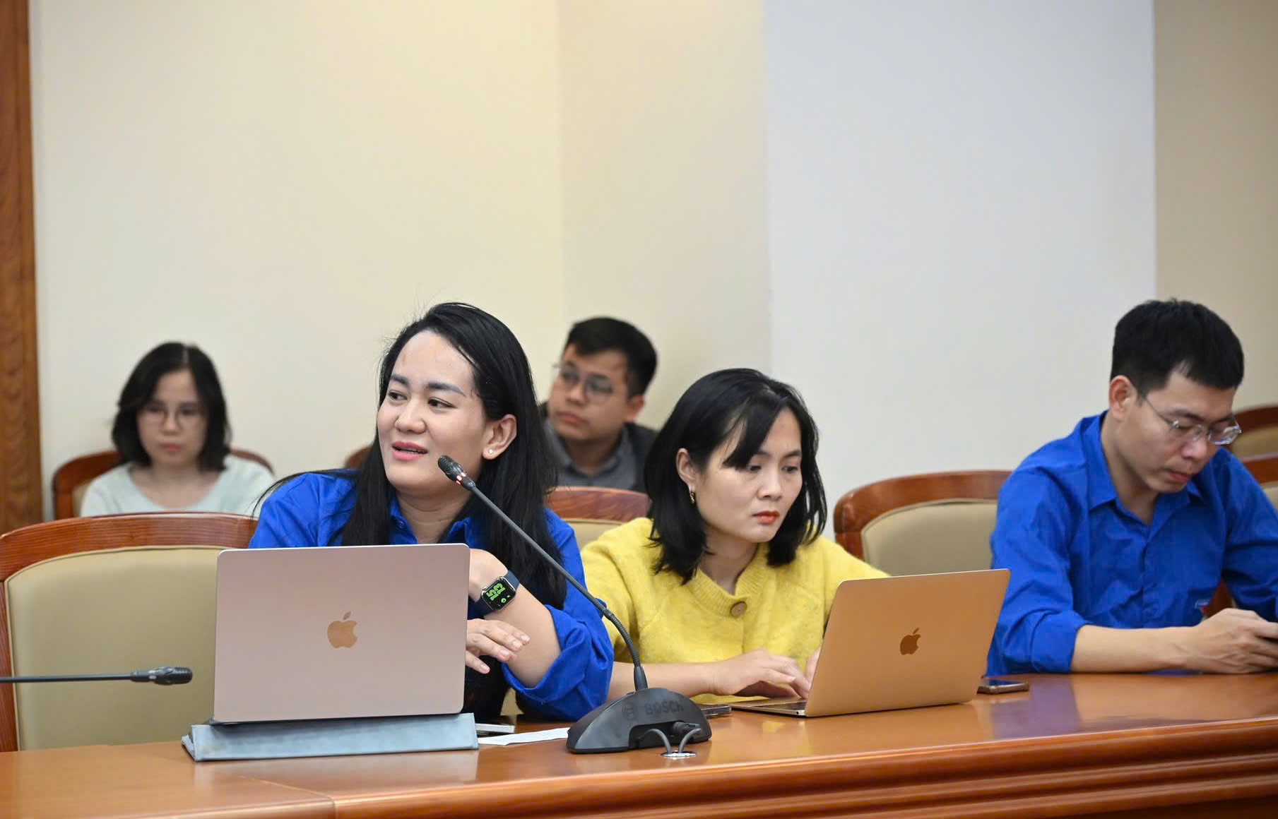 | Phó tổng giám đốc TTXVN Đoàn Thị Tuyết Nhung, các đại biểu và đoàn viên thanh niên TTXVN tại tọa đàm với chủ đề: “Nhanh nhưng phải đúng: Sứ mệnh của cơ quan thông tấn quốc gia ở tuyến đầu thông tin quốc tế”, ngày 13/3 |