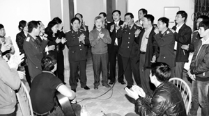 Các nhà báo và sĩ quan, chiến sĩ cùng hát vang bài ca "Bác vẫn cùng chúng cháu hành quân"